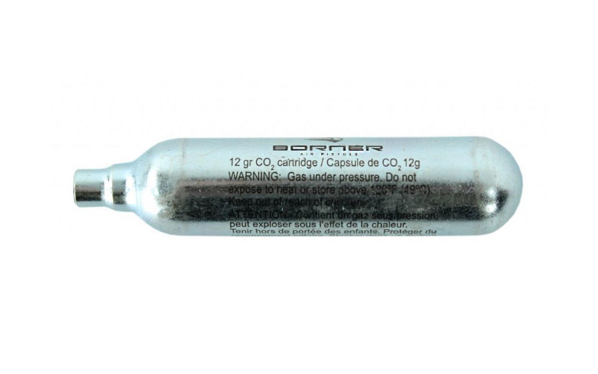 Баллон CO2 Borner 12 гр. предназначен для использования в качестве источника энергии в пневматических пистолетах и винтовках, работающих на углекислом газе. Баллон имеет стальной корпус с герметичной закупоркой горлышка. Использование оружия с баллоном CO2 рекомендуется при температуре не ниже +5°С, во избежание падения давления, влекущего критическое снижение мощности. Правилами безопасности запрещается подвергать баллон CO2 сильному механическому воздействию, вскрывать его и нагревать свыше +50°С.