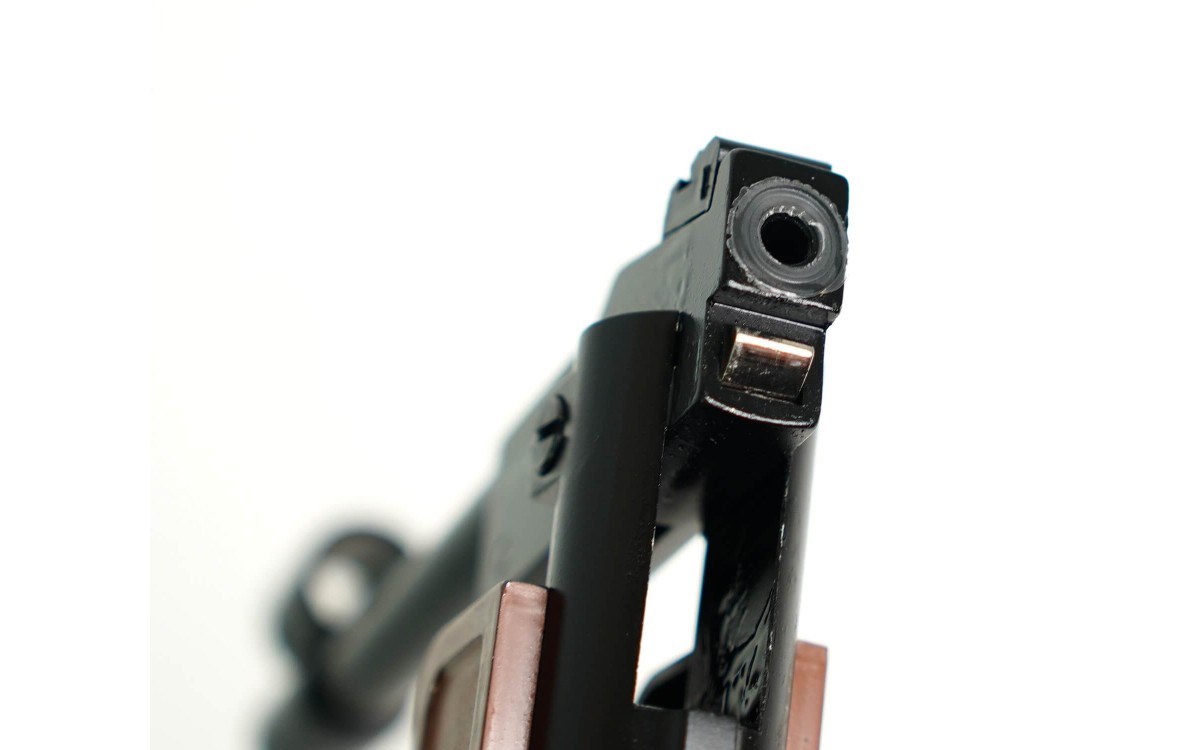 Пневматический пистолет Blow H-01 выпускается с металлическим стволиком, канал которого на всей протяженности выполнен в стандартных нарезах. Использование такого вида стволов дает стрелку использовать в качестве стрелкового снаряда свинцовые боеприпасы в виде воланчика. Калибр ствола 4.5 миллиметров, поэтому производитель рекомендует применять легкие боеприпасы соответствующего размера.