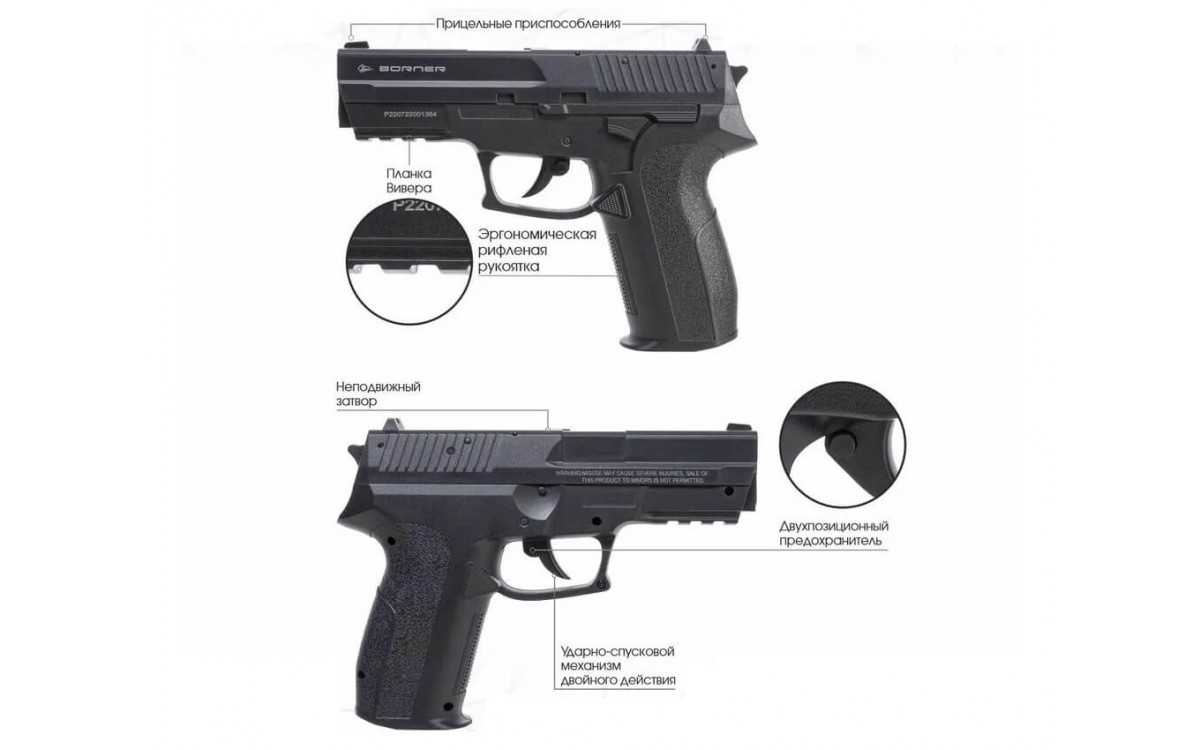 Описание пневматического пистолета Borner 2022 4.5 мм (Sig Sauer SP2022)