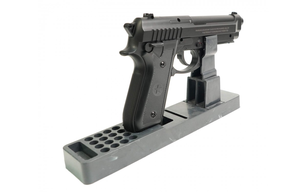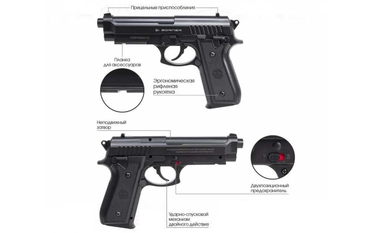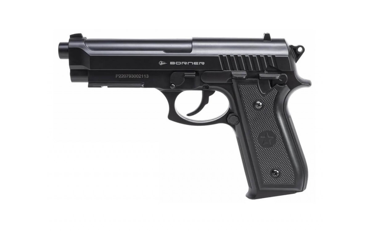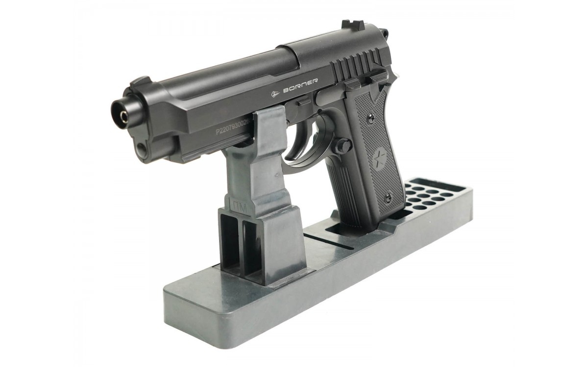 Его силуэт знаком каждому, кто хоть раз смотрел фильмы или играл в видеоигры, изображающие борьбу полиции с мафией: 92-я модель - это классический дизайн, полюбившийся стрелкам за эргономику и многозарядный магазин. Эти достоинства были переняты и у пневматического Borner.