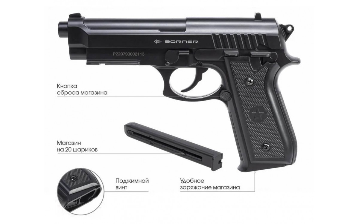Описание пневматического пистолета Borner 92 4.5 мм (Berreta 92)