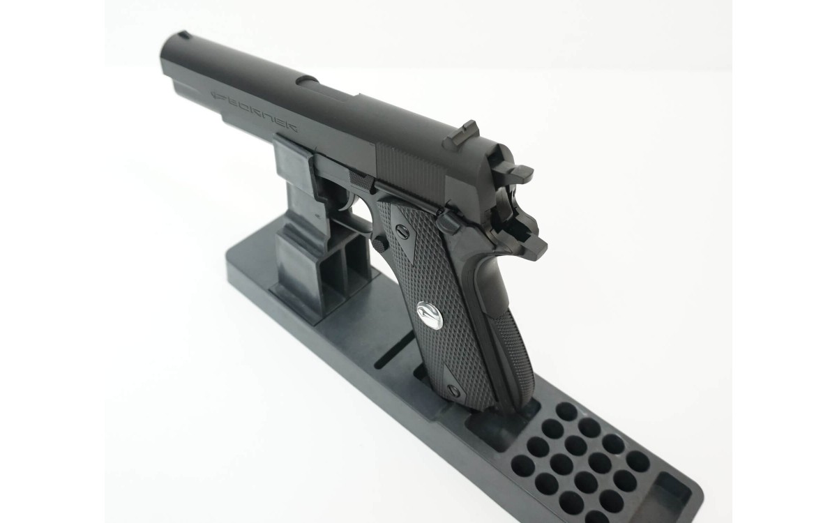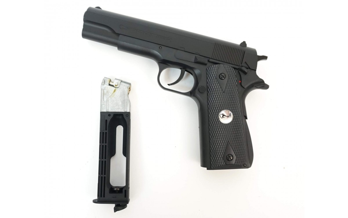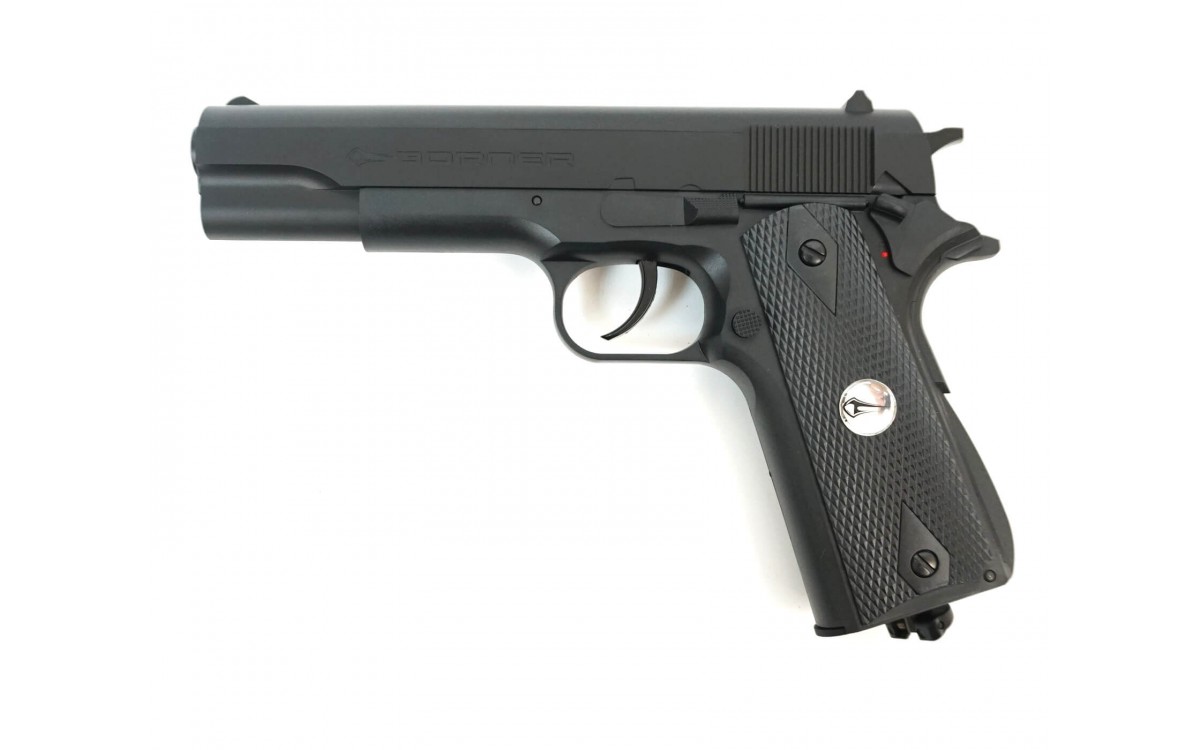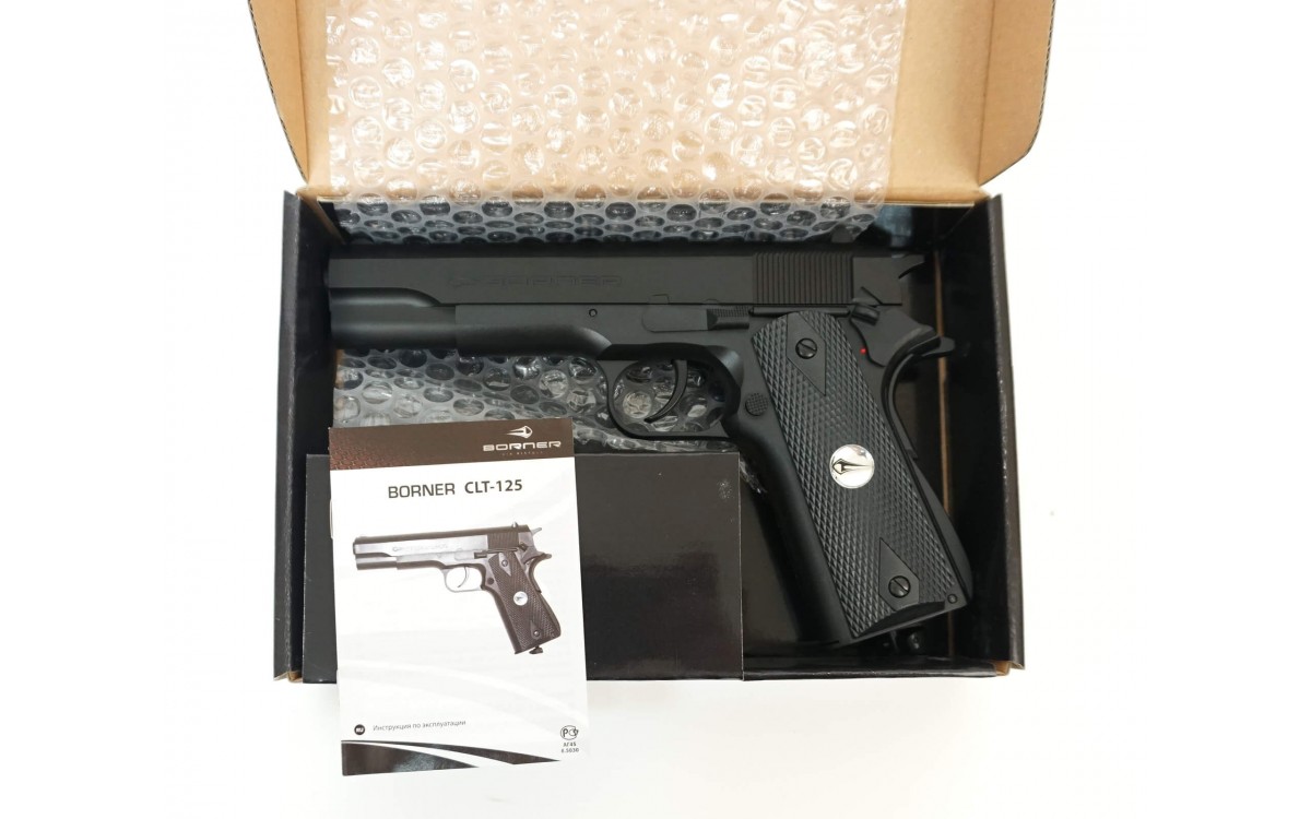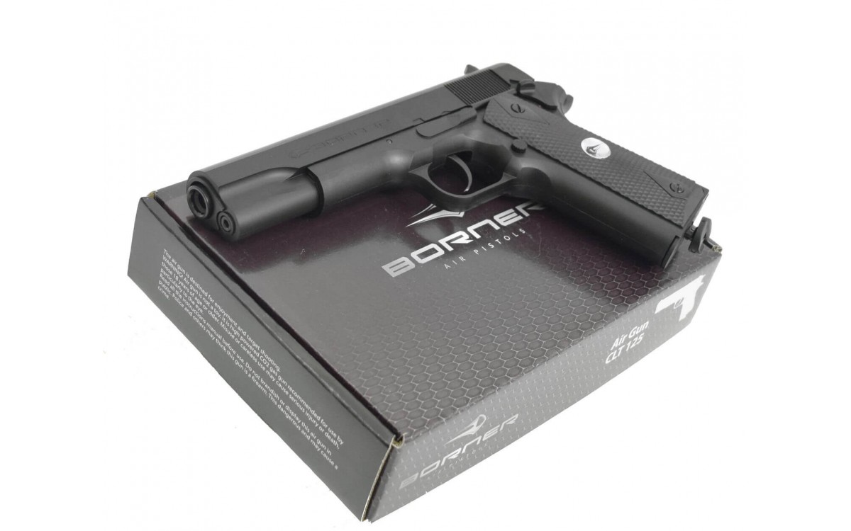 Пневматический пистолет Borner CLT125 калибра 4,5 мм относится к недорогому сегменту, в то же время эта модель входит в линейку реплик оригинального огнестрельного оружия, копирующих Colt 1911A1 - основное личное оружие армии и полиции США. Эта модель была официально принята на вооружение в 1911 году и используется до сих пор.