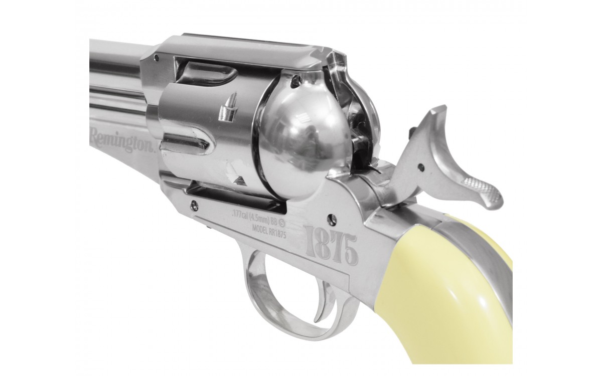 На протяжении 200 лет американская компания Remington является лидером в производстве оружия, и одной из первых моделей, выпущенных и разработанных под этой маркой, был револьвер Crosman Remington 1875. Он часто используется в качестве реквизита в художественных и документальных фильмах о ковбоях на диком западном. Кроме того, он по-прежнему популярен среди граждан таких стран, как США, Великобритания и Мексика, для охоты, самообороны и реконструкций. На основе одной из моделей этого огнестрельного оружия производителем Crossman была выпущена пневматическая версия, которая во всех деталях воспроизводит оригинал.