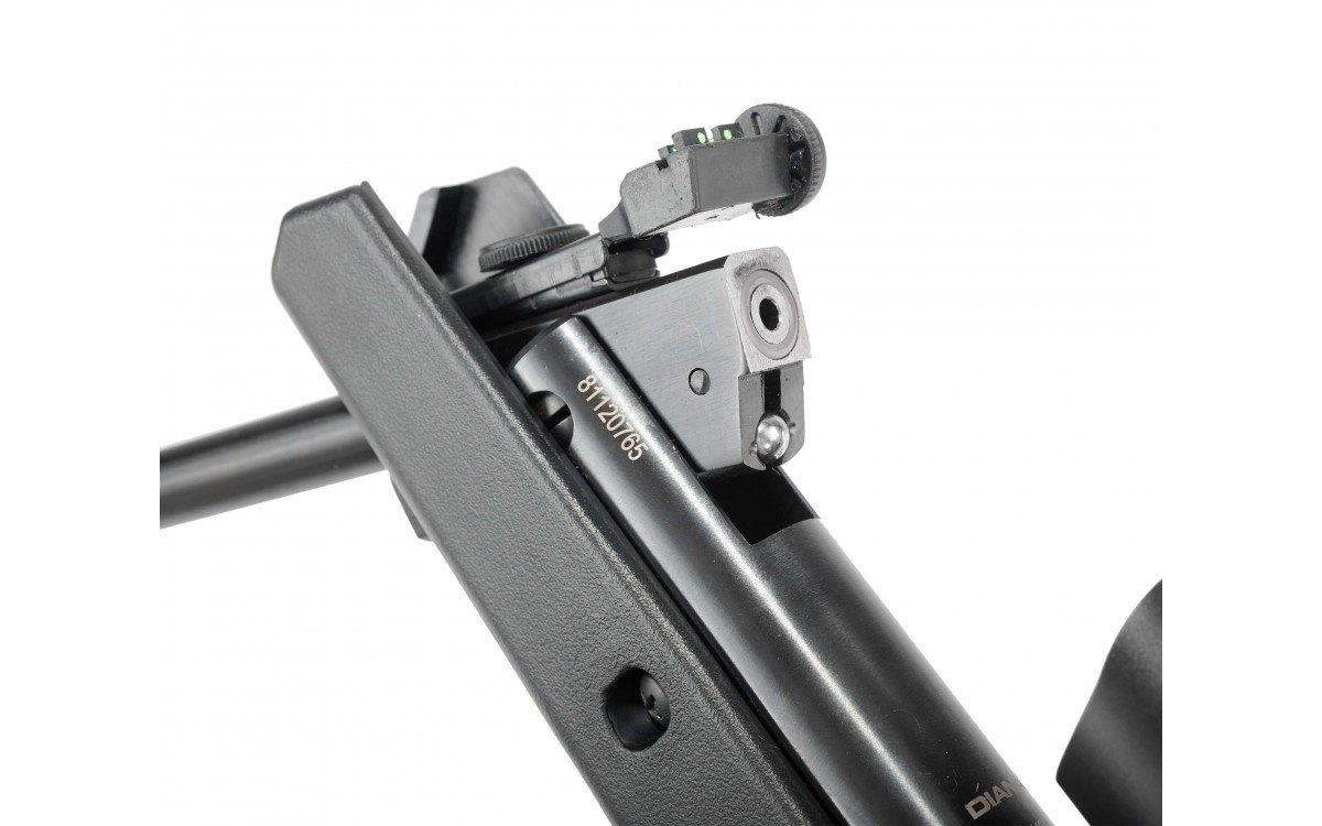 Пневматическая винтовка Diana относится к категории пружинно-поршневого оружия. Чтобы сделать выстрел, необходимо натянуть боевую пружину, отводя ствол - для удобства на дульной части есть выемка, которая помогает удерживать оружие. При переломе винтовки появляется доступ к магазину, в который помещается свинцовый пулька калибром 4,5 мм.