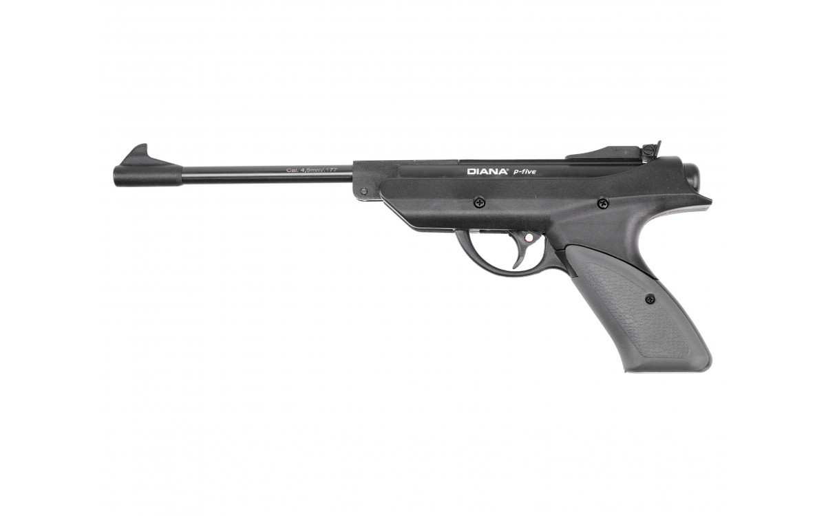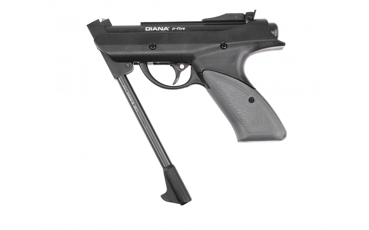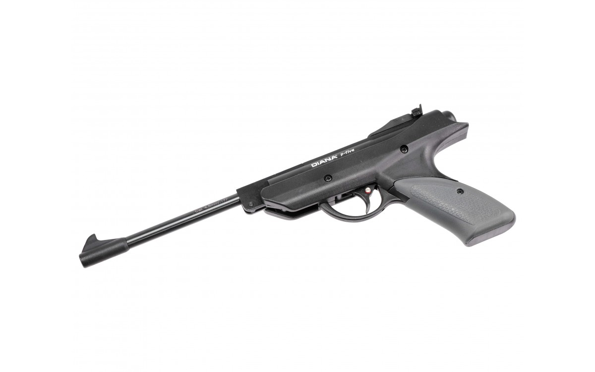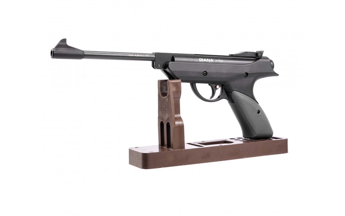 Кроме прочего, требуется отметить, что пистолет Диана П-Файв оснащается регулируемым целиком и мушкой открытого типа, позволяющих точно поражать цели на коротких дистанциях. Отдельно также выделяется наличие текстурной полимерной рукояти с противоскользящей поверхностью, обеспечивающей необходимую эргономику и удобство обращения с оружием.