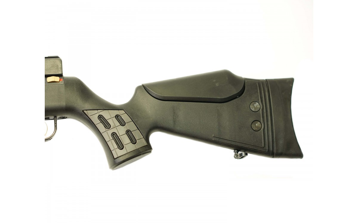 Задняя часть ложи снабжена резиновым прикладом, который на 50-60% снижает отдачу при стрельбе. Верхняя часть оснащена регулируемым по высоте подщечником.