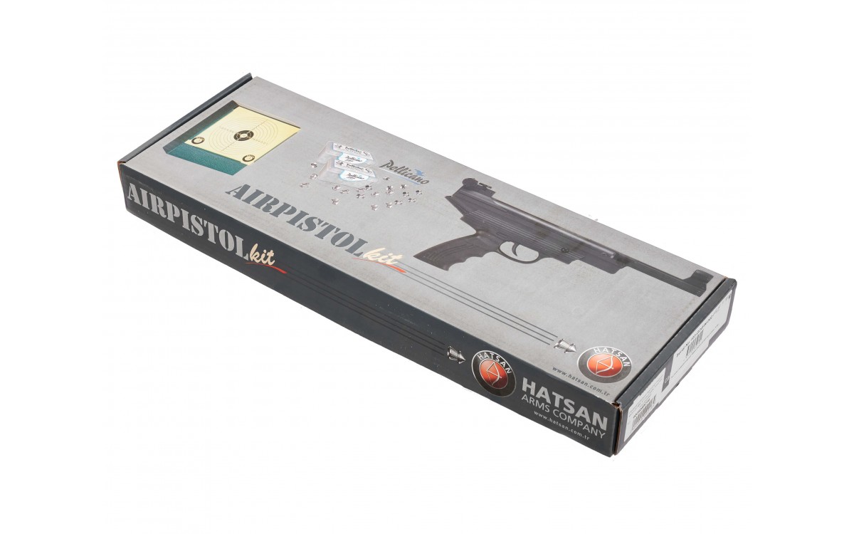 Эта пневматика Hatsan нашла спрос в спорте и сфере развлечений. Пистолет представляет пружинно-поршневую пневматику, отличающуюся простотой механизма, где выстрел происходит по схеме пружина-поршень-компрессор-пуля. Взведенная пружина высвобождается и воздействует на поршень, сжимающий воздух в компрессоре, после чего снаряд от сжатого воздуха получает энергию для последующего полета.