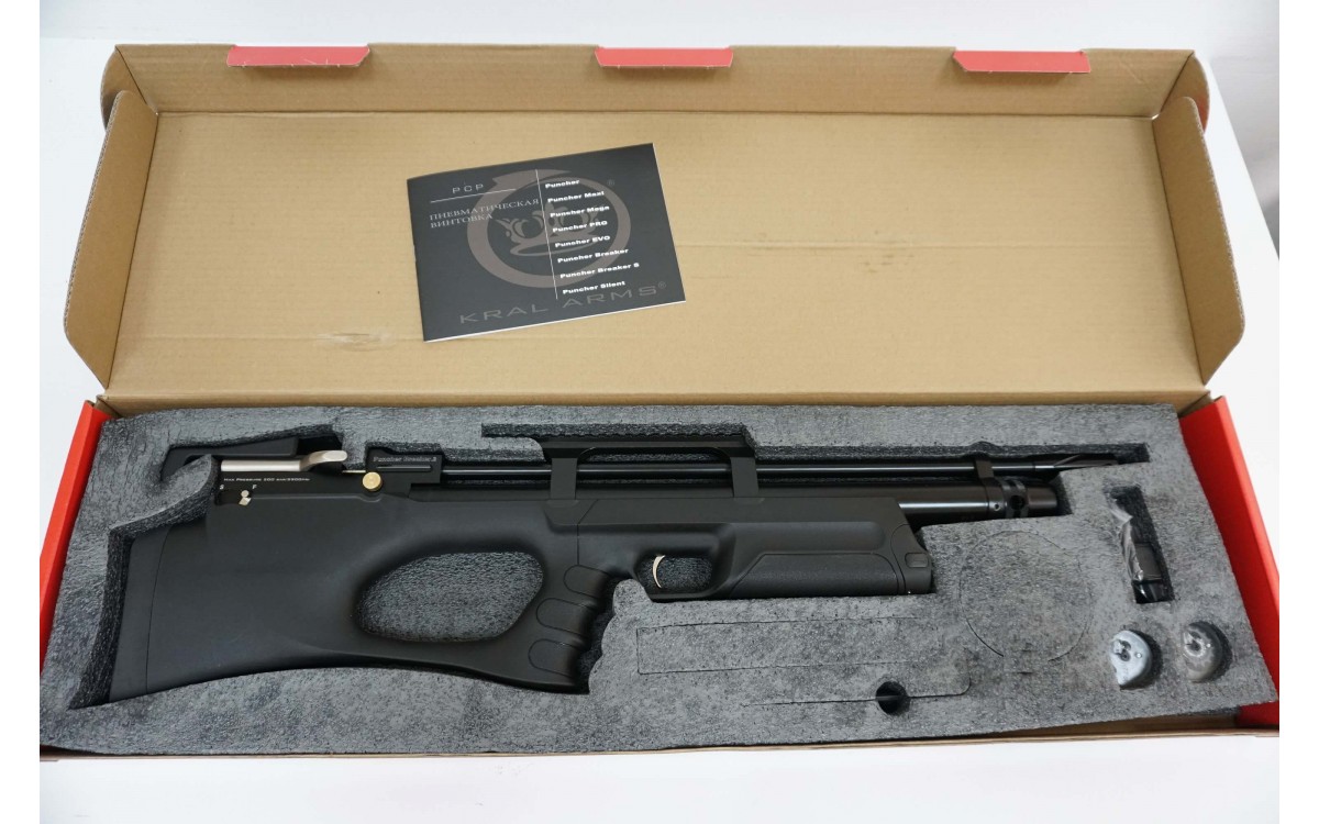 Kral Puncher Breaker 3S PCP 5,5 мм - это PCP-винтовка, имеющая дульную энергию 3 Дж, что соответствует требованиям законодательства. По заявлению производителя, модель способна достигнуть скорости 300 м/с. Ее длина составляет 735 мм.
