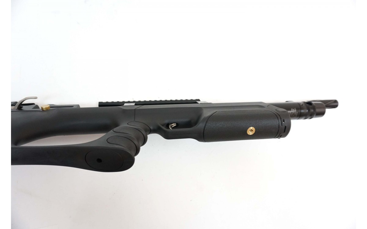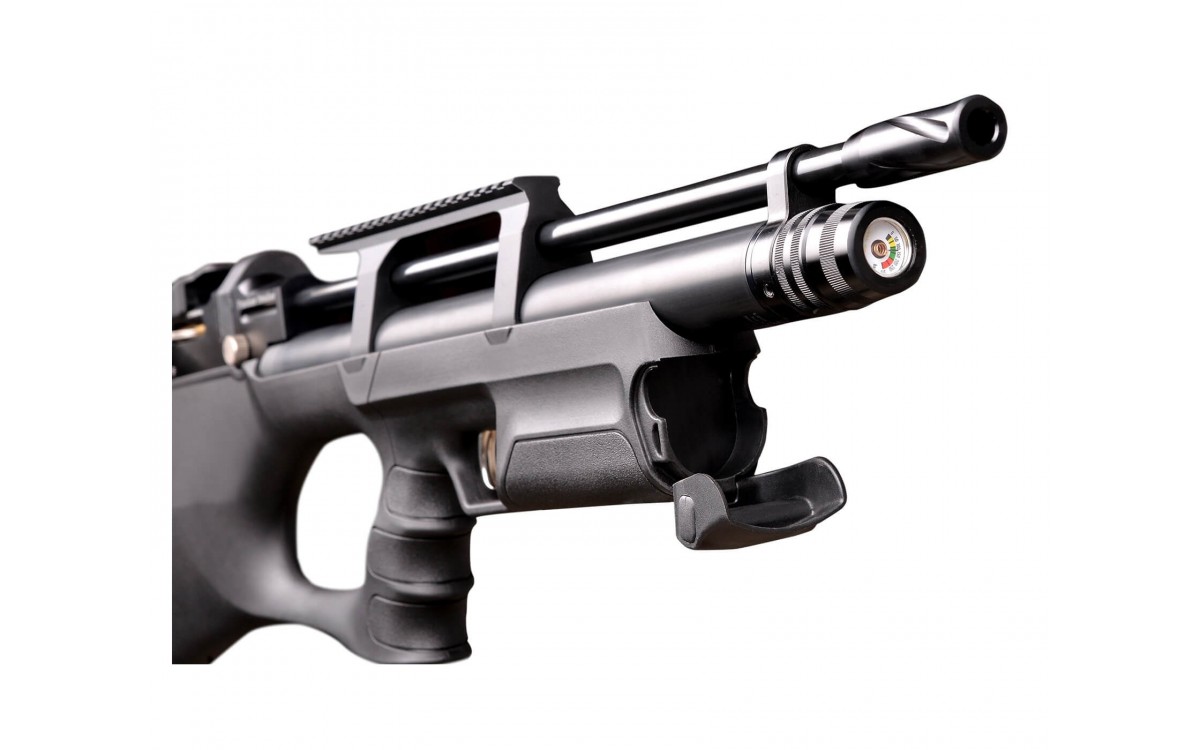 Стрельба осуществляется за счет сжатого воздуха, который хранится в резервуаре с рабочим давлением 200 бар. Для накачки резервуара стрелку необходимо использовать насос или заправочную станцию, а модель оснащена манометром для контроля давления.