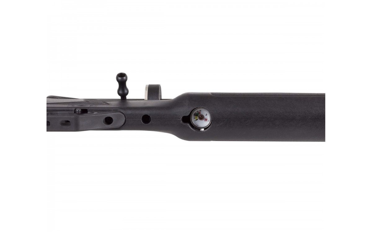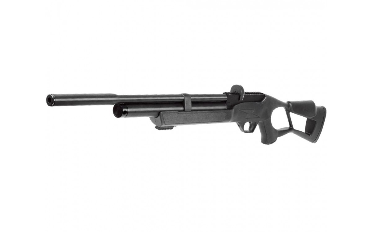 Винтовка оснащена резервуаром сжатого воздуха объемом 165 см3 и максимальным давлением в 200 бар. Она стреляет пулями или шарами калибра 5,5 мм и имеет ёмкость барабана на 12 выстрелов. Механизм спуска регулируется, а предохранитель - неавтоматический. Нарезной ствол обеспечивает высокую точность каждого выстрела.