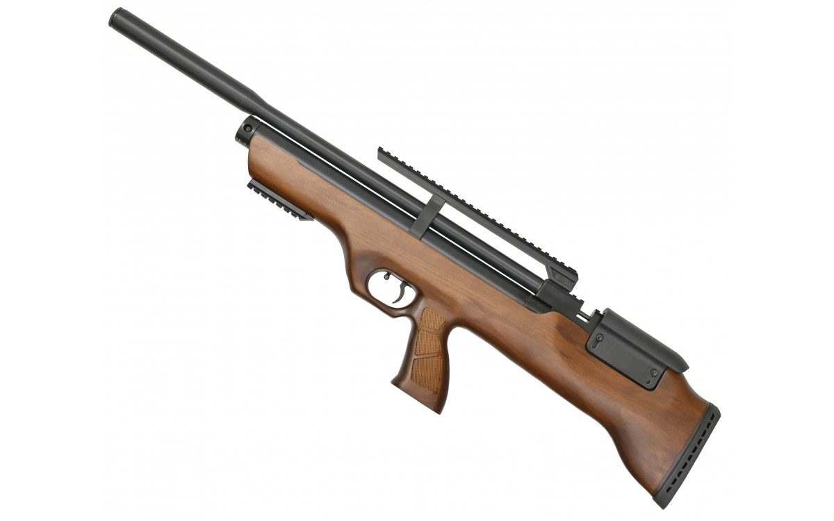 Винтовка доступна в калибре 5,5 мм и очень проста в использовании: нужно только накачать баллон, расположенный под стволом, зарядить магазин-барабан и взвести затвор. Важно отметить, что у этой модели нет автоматического затвора: подготовка к следующему выстрелу также требует взведения затвора.