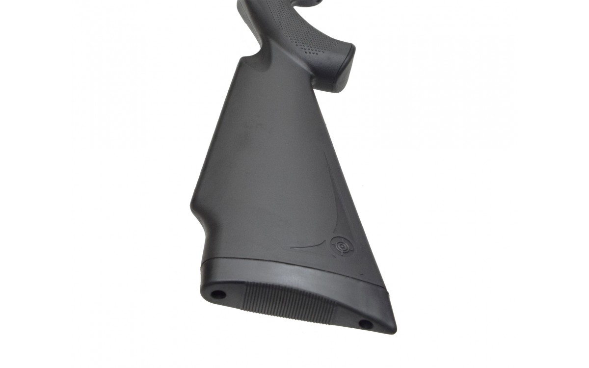 Корпус и приклад пневматической винтовки Crosman Fury R8-CF1K77NP изготовлены из черного пластика, который является ударопрочным и долговечным. Ложа удобная. Ствол изделия изготовлен из высококачественной оружейной стали. Внутри отверстия имеется прозрачное предохранительное кольцо. Приклад изготовлен из высококачественного полимера, который содержит резиновую подложку. На цевье и рукояти много выпуклых точек, которые помогут лучше удерживать оружие.
