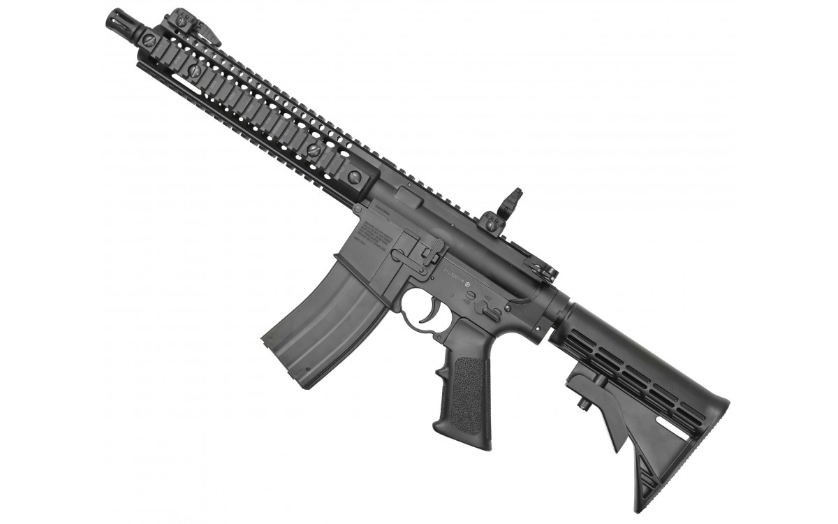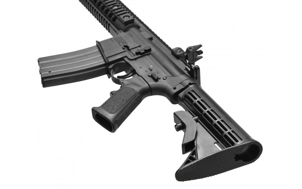 Винтовка пневматическая Crosman R1 яркий пример современного газобаллонного оружия. Ее прототипом является американская штурмовая винтовка AR-15. Габариты и вес повторяют оригинал — длина составляет 755 мм, масса 2.68 кг, в руках автомат будет чувствоваться как огнестрельный.