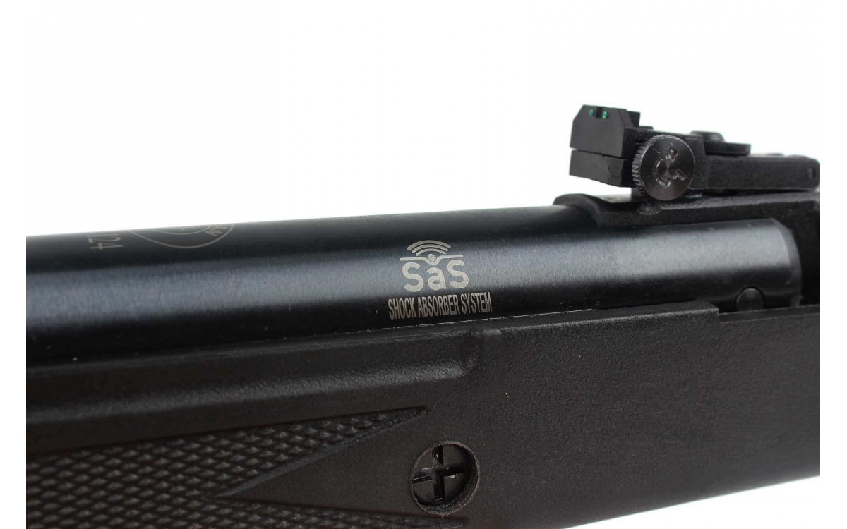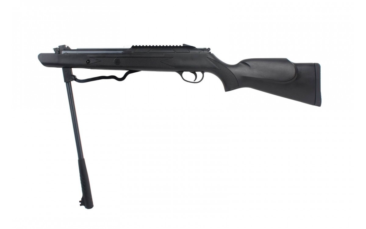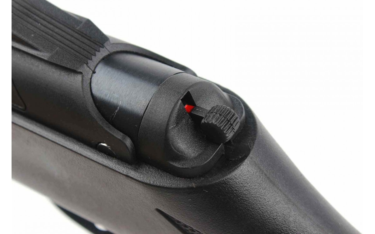 Чтобы взвести курок оружия, вам нужно "выбить" ствол из замка и снять предохранитель в торце винтовки. Боеприпасы стандартные пневматические пули калибра 4,5 мм.