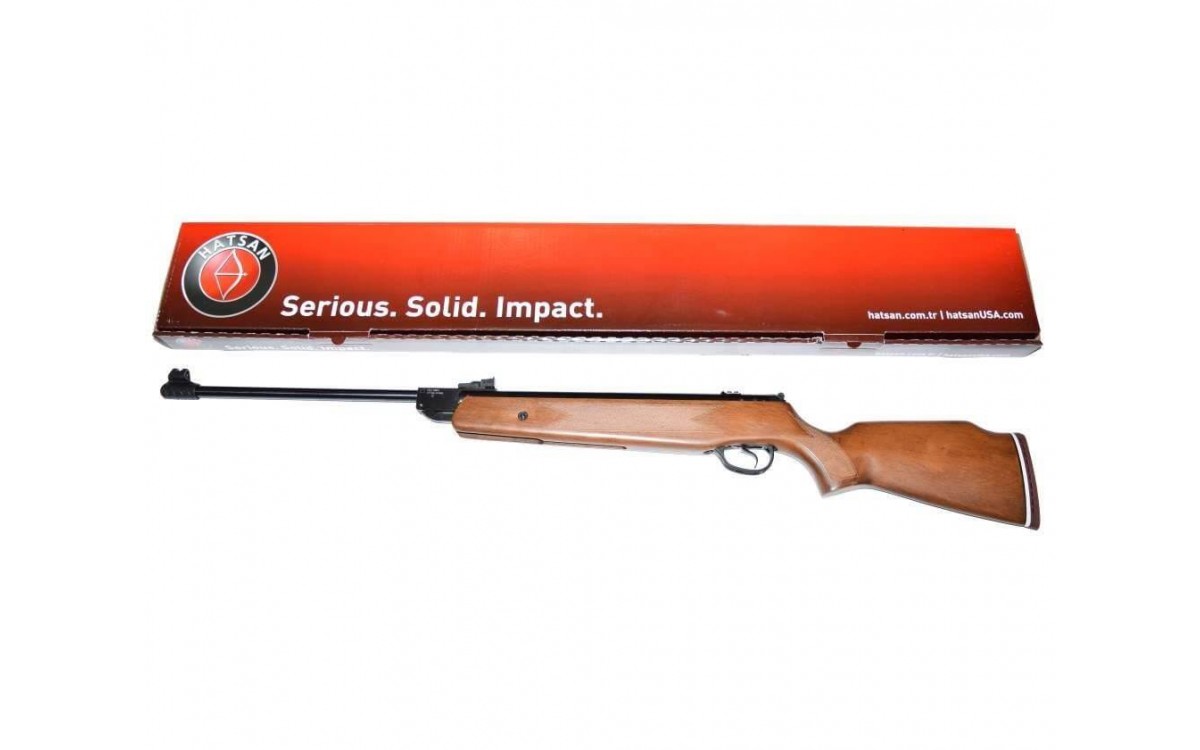 Hatsan55S TR, модель со стволом винтовки с деревянным прикладом хороша для увлекательной охоты. Всем понятно, что эта винтовка вряд ли принесет крупную добычу, но куропатка или мелкая дичь могут вас порадовать. Скорость полета, которую приобретает заряд, при запуске достигает 305 м/с, что является очень хорошим показателем по сравнению с другими моделями.