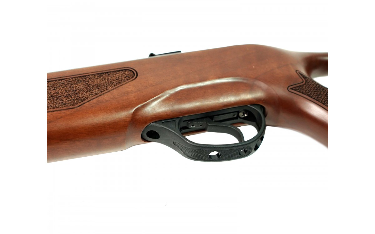 Пневматический Hatsan также отличается от старых моделей 2-ступенчатым отверстием спускового крючка Quattro trigger. Этот механизм позволяет отдельно регулировать усилие нажатия на крючок, а также расстояние до отпускания шептала. В то же время, есть еще одна пара настроек для первой ступени выжима.