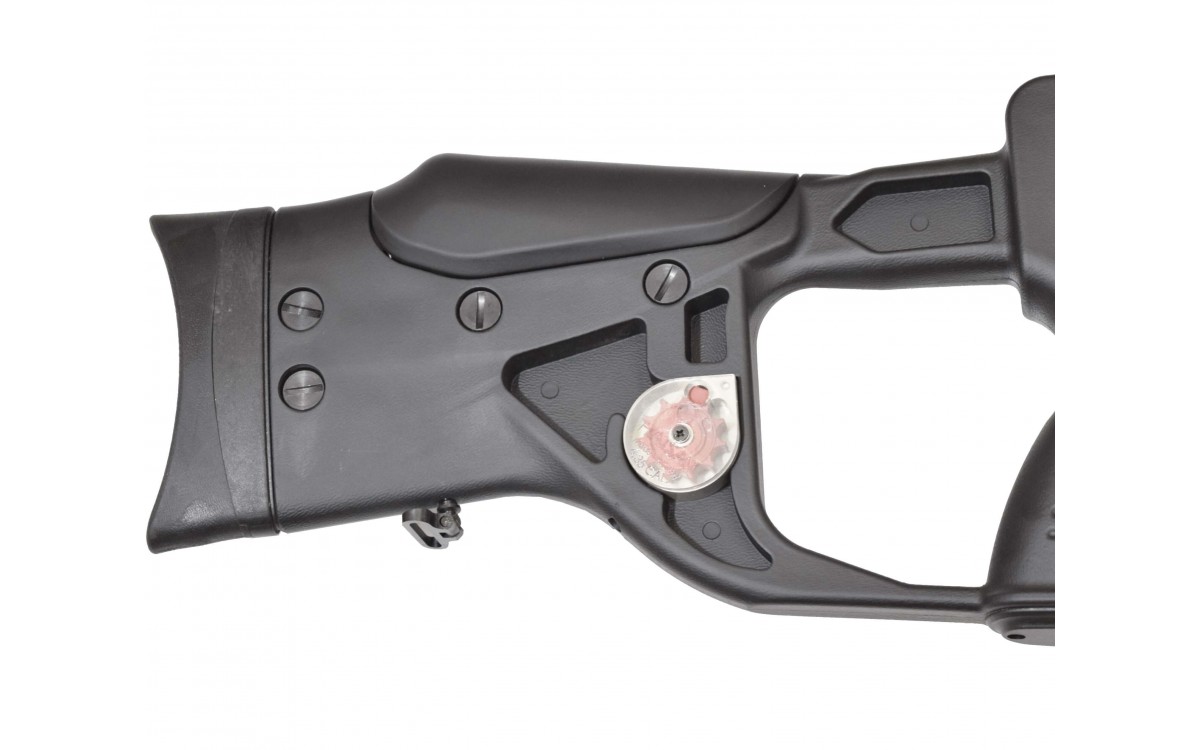 Винтовка оснащена высокоточным стволом, изготовленным из стали. Движущей силой винтовки является баллон со сжатым воздухом емкостью 500 см3, для контроля уровня давления стрелком установлен манометр. С одним баллоном может быть произведено около 120 выстрелов.