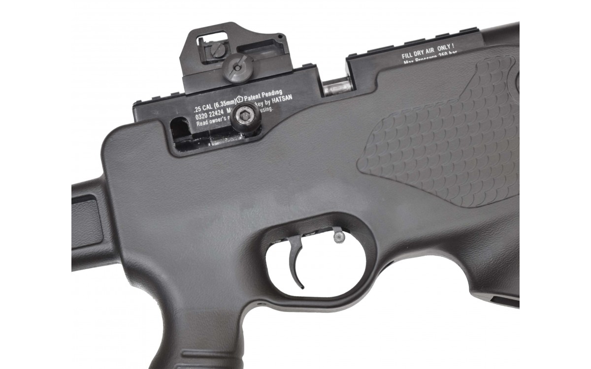 Винтовка Hatsan оснащена подствольной планкой для крепления стрелковых принадлежностей и составной направляющей с креплениями 11 мм и 22 мм. Стандартное прицельное приспособление модели представлено съемной мушкой, полностью регулируемым целиком. Эти элементы оснащены волоконно-оптическими нитями. Установлены антабки для оружейного ремня.