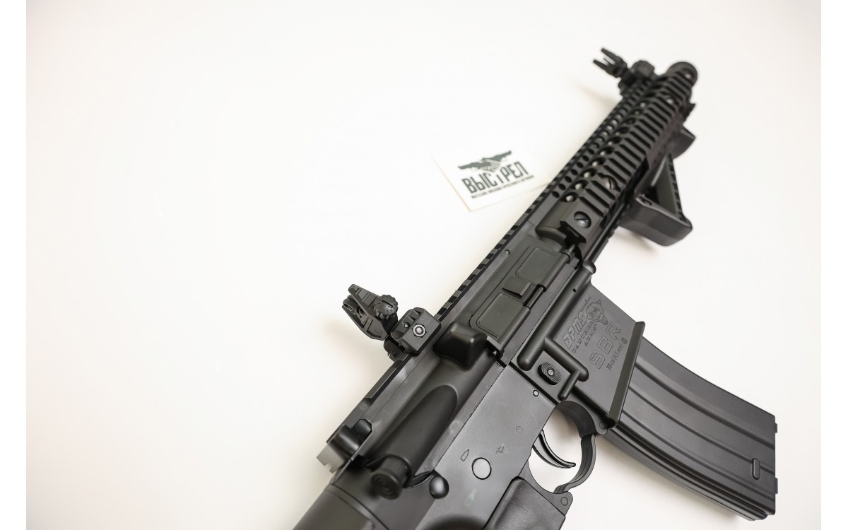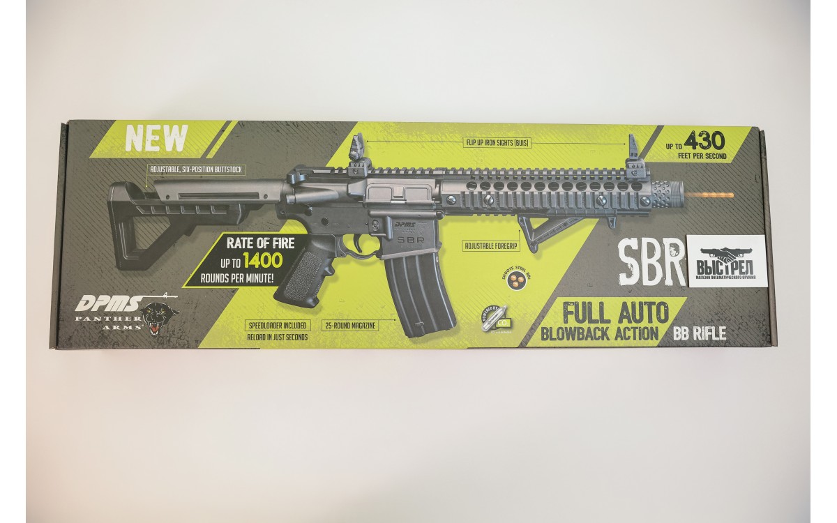 Пневматическая винтовка Crosman DPMS SBR Full Auto - это разработка с газовым баллоном для автоматического ведения огня на основе штурмовой винтовки M4, продукта американского производителя. Эта модификация, как и прототип огнестрельного оружия, сохранила подвижность затвора и кнопки досылания боеприпасов. Крышка выброса гильзы в этой модели также активная.