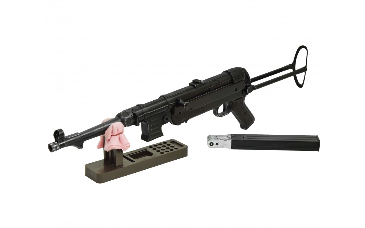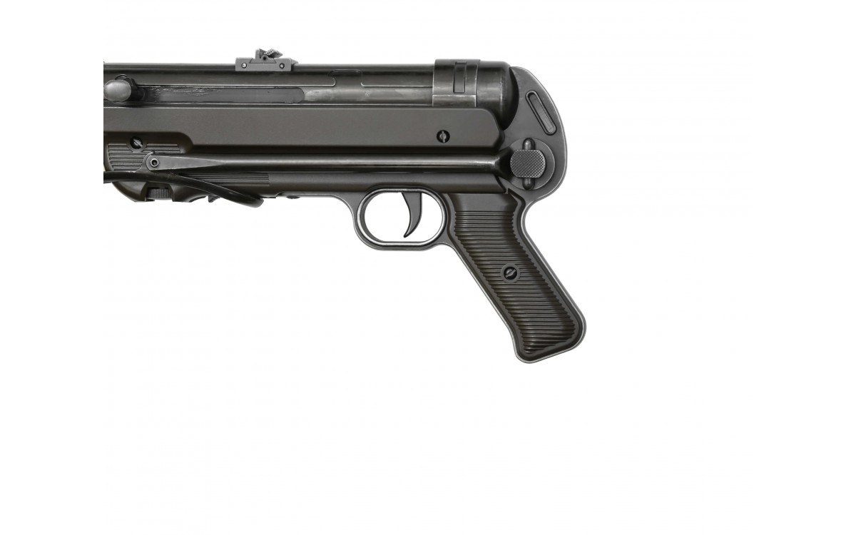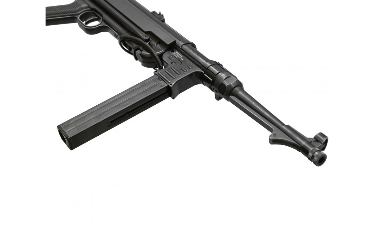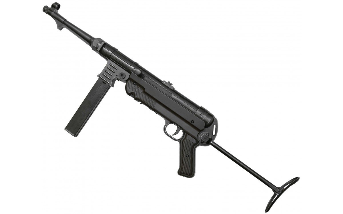 Пневматический пистолет-пулемет Umarex Legends MP-40 – это газобаллонная версия немецкого автомата МР-40, легенды времен Второй мировой войны. Часто это оружие называют Шмайссером, по имени немецкого оружейника Х. Шмайссера, хотя создателем МР-40 был талантливый конструктор Генрих Фольмер. МР-40 является самым известным германским пистолетом-пулеметом периода Второй мировой войны, несмотря на то, что войска вермахта были вооружены таким оружием достаточно слабо. Бренд Umarex занимается выпуском высококачественных пневматических копий известных стрелковых модификаций, имя компании известно ценителям пневматики всего мира.