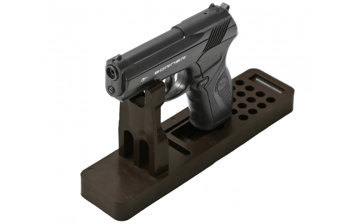Магазин пневматического пистолета Borner C11 рассчитан на 19 зарядов, а скорость стрельбы составляет 120-130 м/сек. При бережном уходе и правильной эксплуатации пистолет служит своему владельцу достаточно долго. Вес оружия - примерно 500 грамм, длина - 19,5 см.