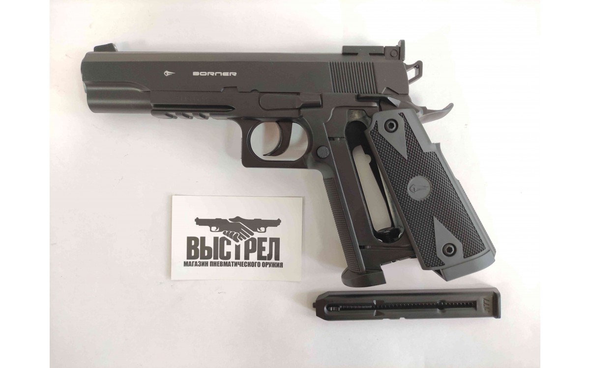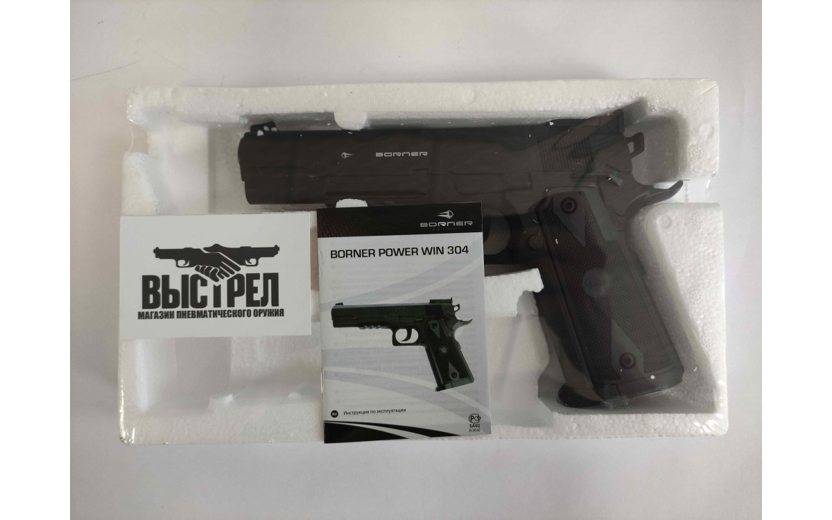 Пневматический пистолет Borner Power Win 304 - бюджетная модель от компании Borner для начинающих стрелков. Вес пистолета составляет всего 600 г, поэтому рука не будет подвергаться сильной нагрузке и не устанет во время стрельбы.