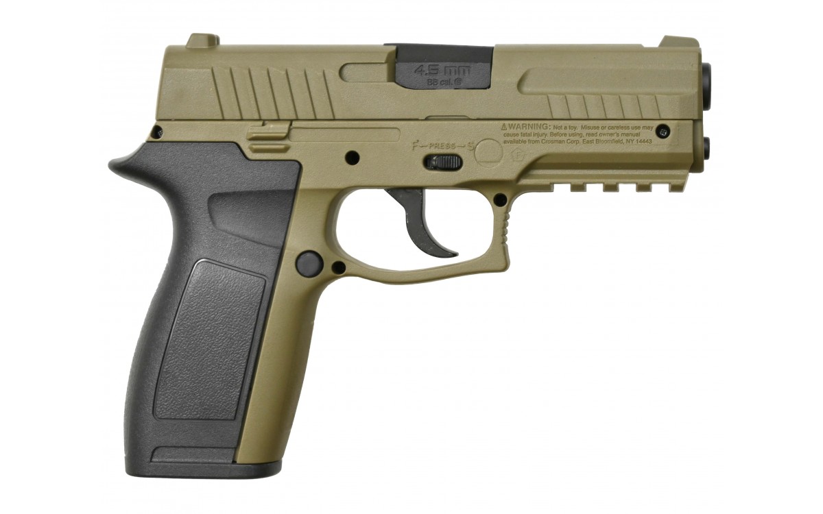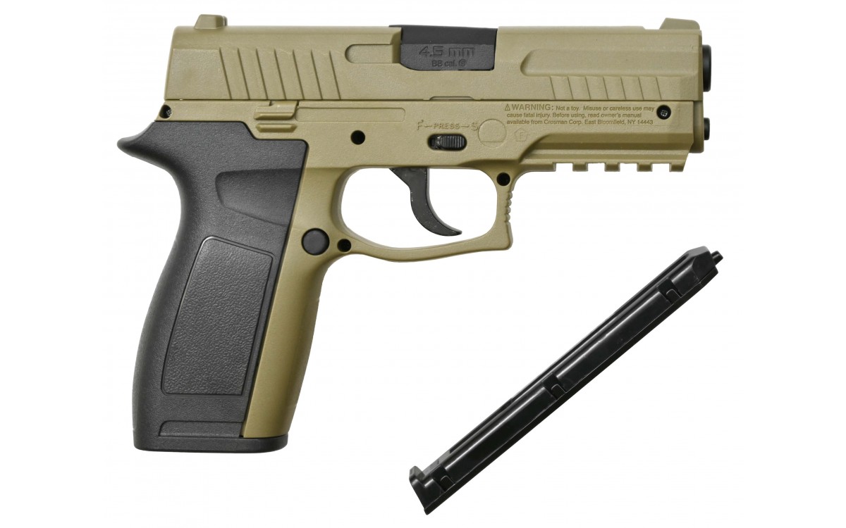 - корпус пистолета Кросман изготовлен из оружейного пластика в двух цветах - пустыня/черный.