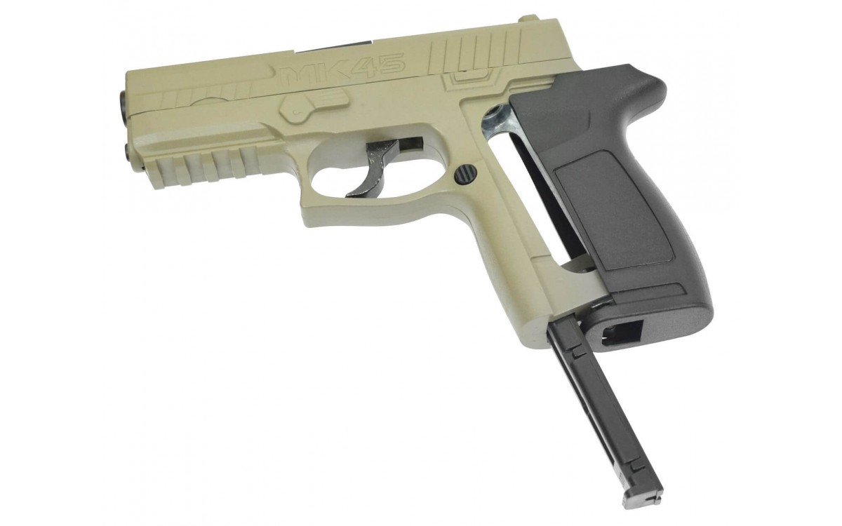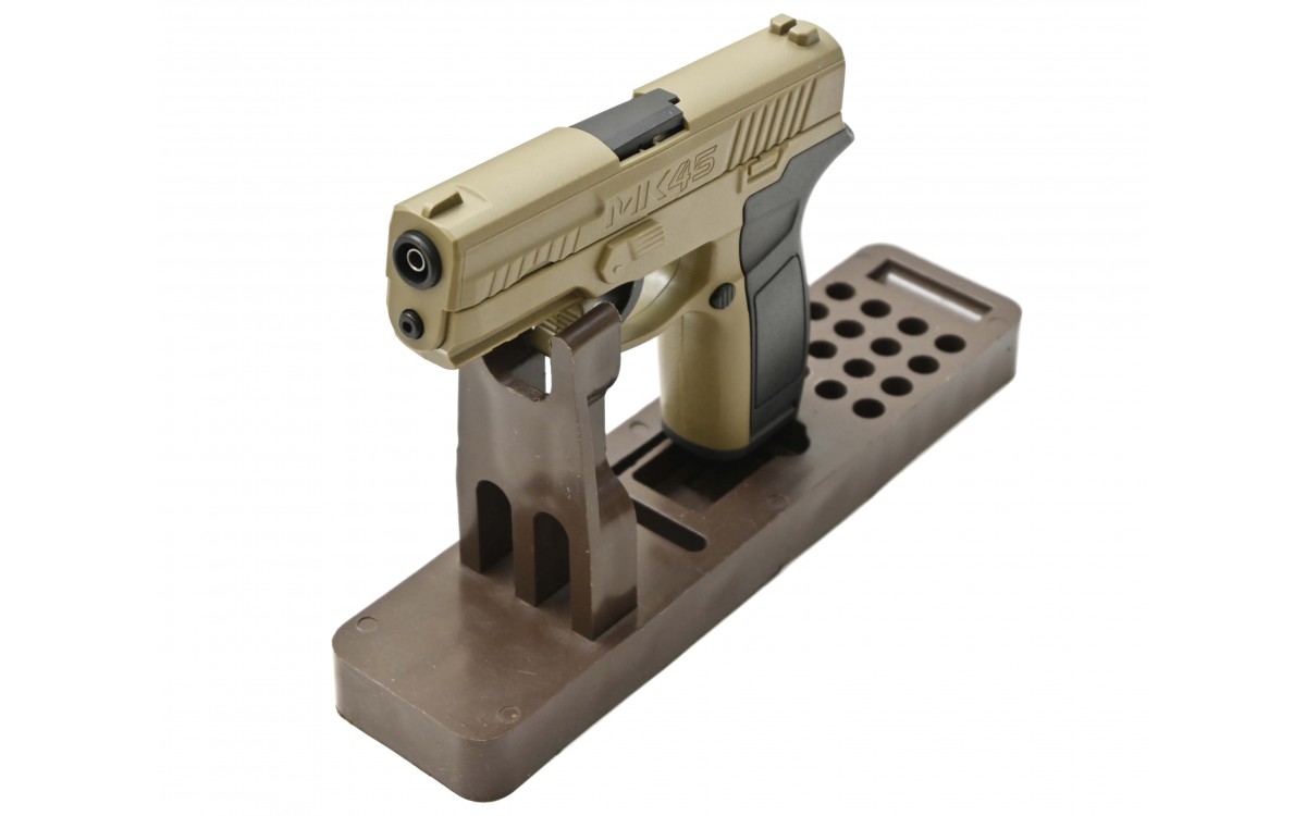 - общая длина пистолета MK45 CO2 составляет 183 мм, а вес не превышает 285 гр;