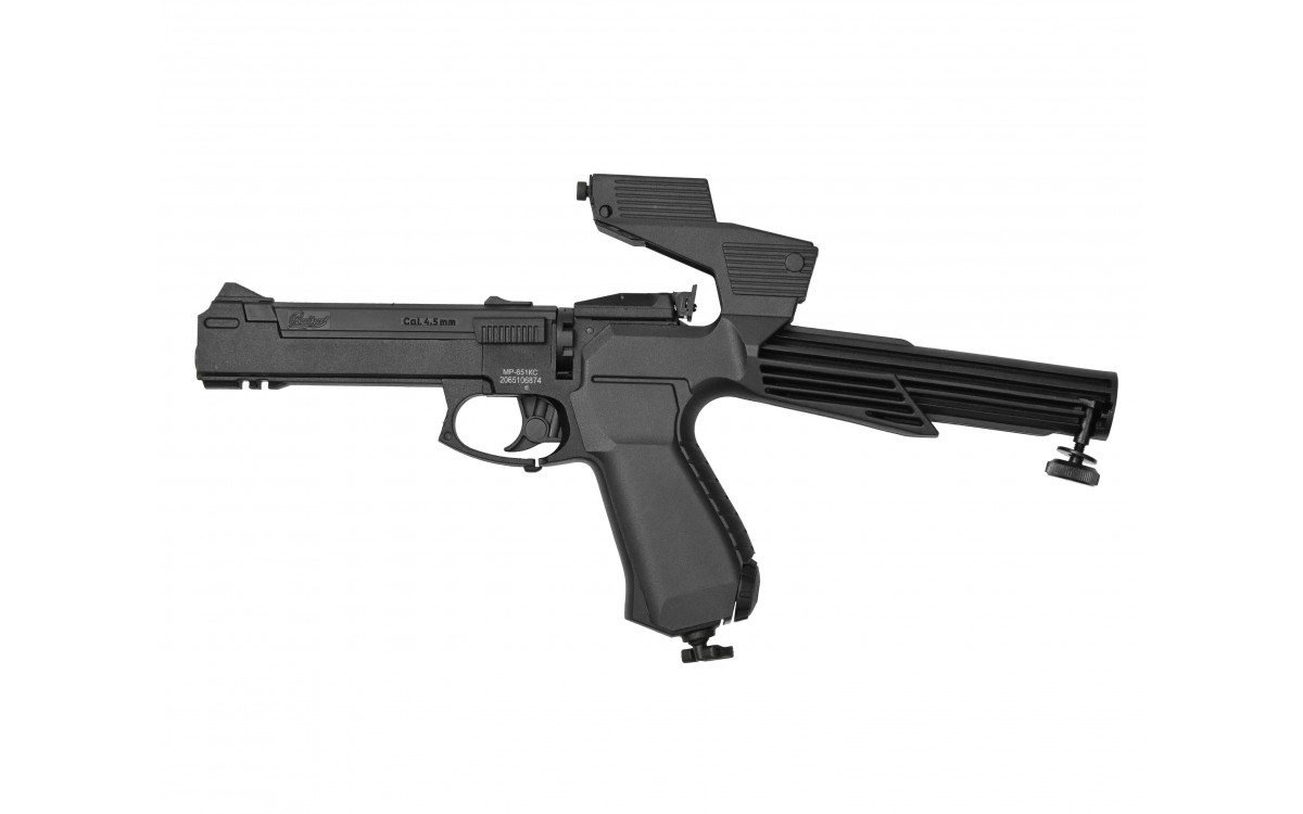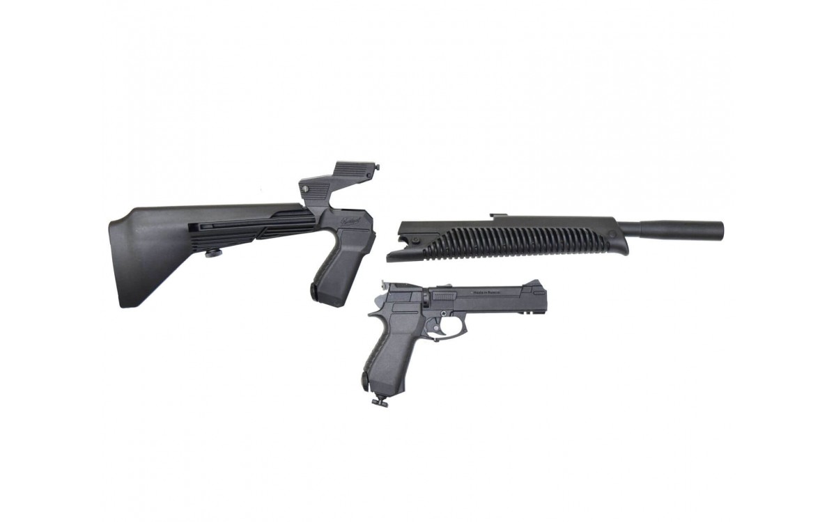 - По своему желанию можно быстро и просто изменять внешний облик пистолета МР-651-07 КС благодаря сменному, регулируемому по длине прикладу и цевью - имитатору ствола. Возможные варианты трансформации оружия: пистолет, пистолет с прикладом, винтовка без приклада, винтовка.