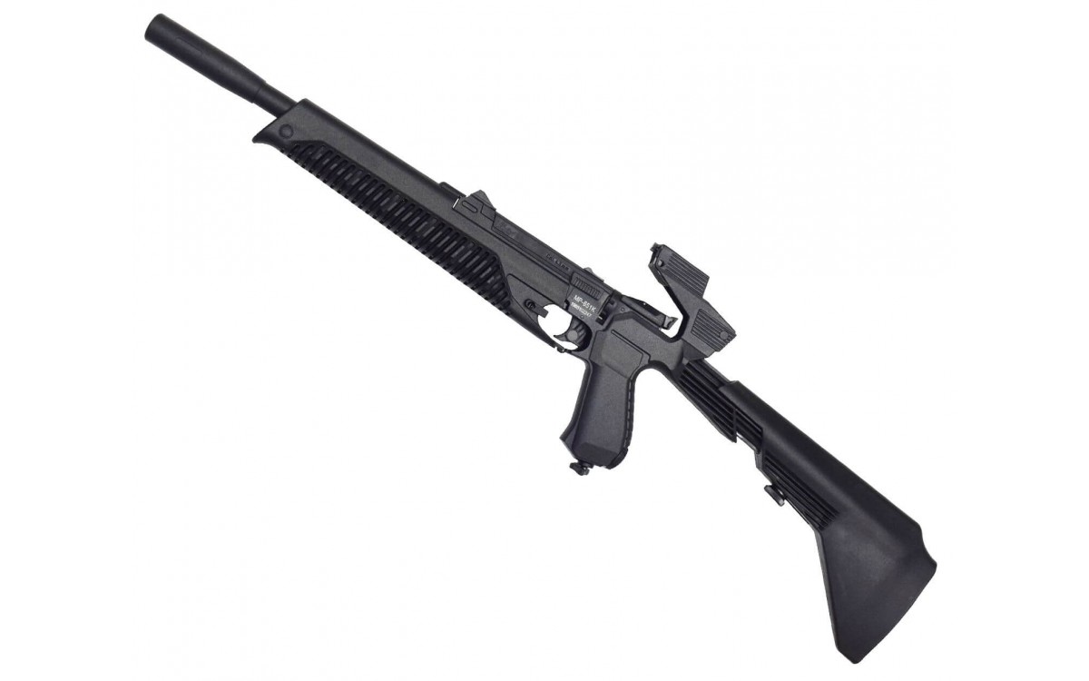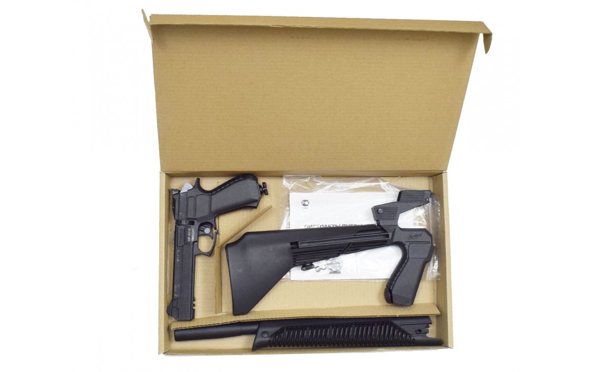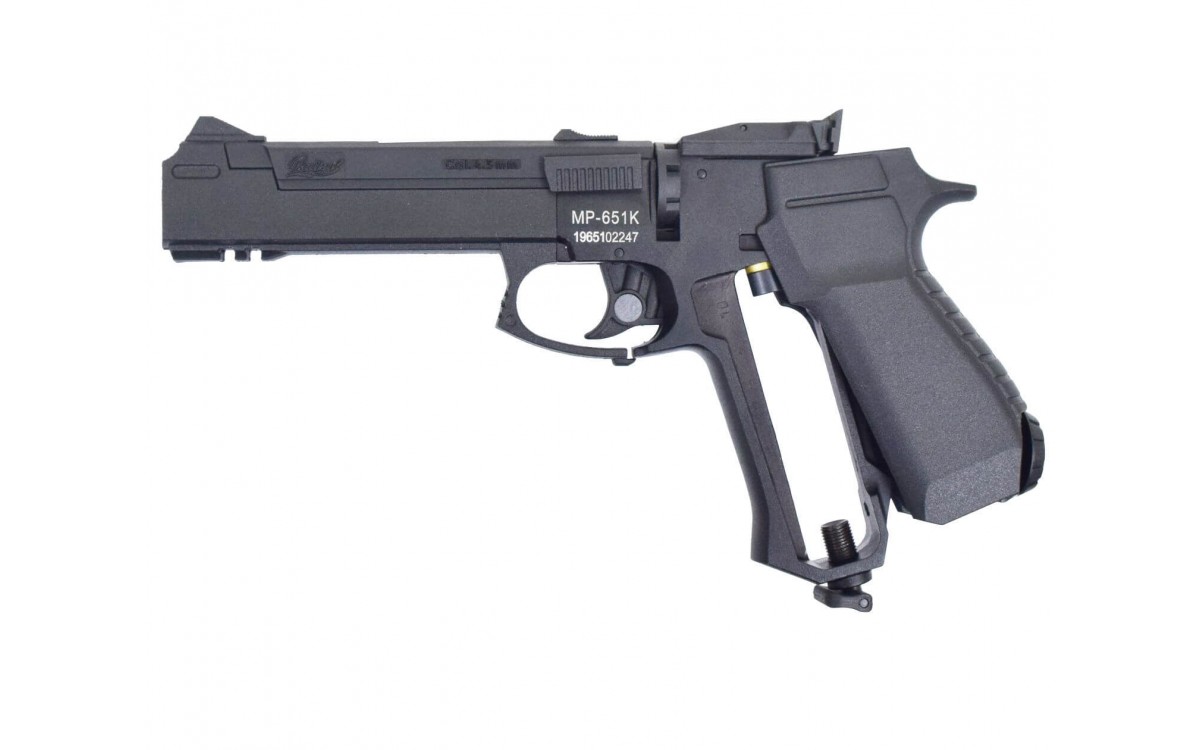 Пневматический пистолет МР-651-09 К – бюджетная модульная модель пистолета-винтовки от Ижевкого механического завода. В полностью собранном виде этот пистолет выглядит как полноценная винтовка. Кроме винтовки, в зависимости от целей и предпочтений, ИЖ МР 651 09 К может стать как пистолетом с удобным прикладом, так и винтовкой с укороченным прикладом и улучшающим захват цевьем.