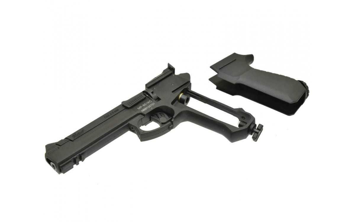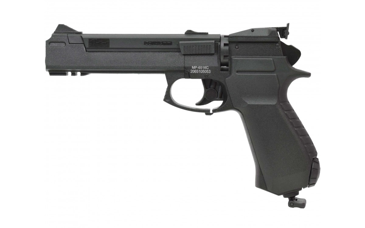 Пневматический пистолет МР-651 КС – газобаллонный модульный пистолет для развлекательной стрельбы. Он заслужил свою популярность благодаря доступной цене, оригинальному дизайну и хорошим стрелковым характеристикам.