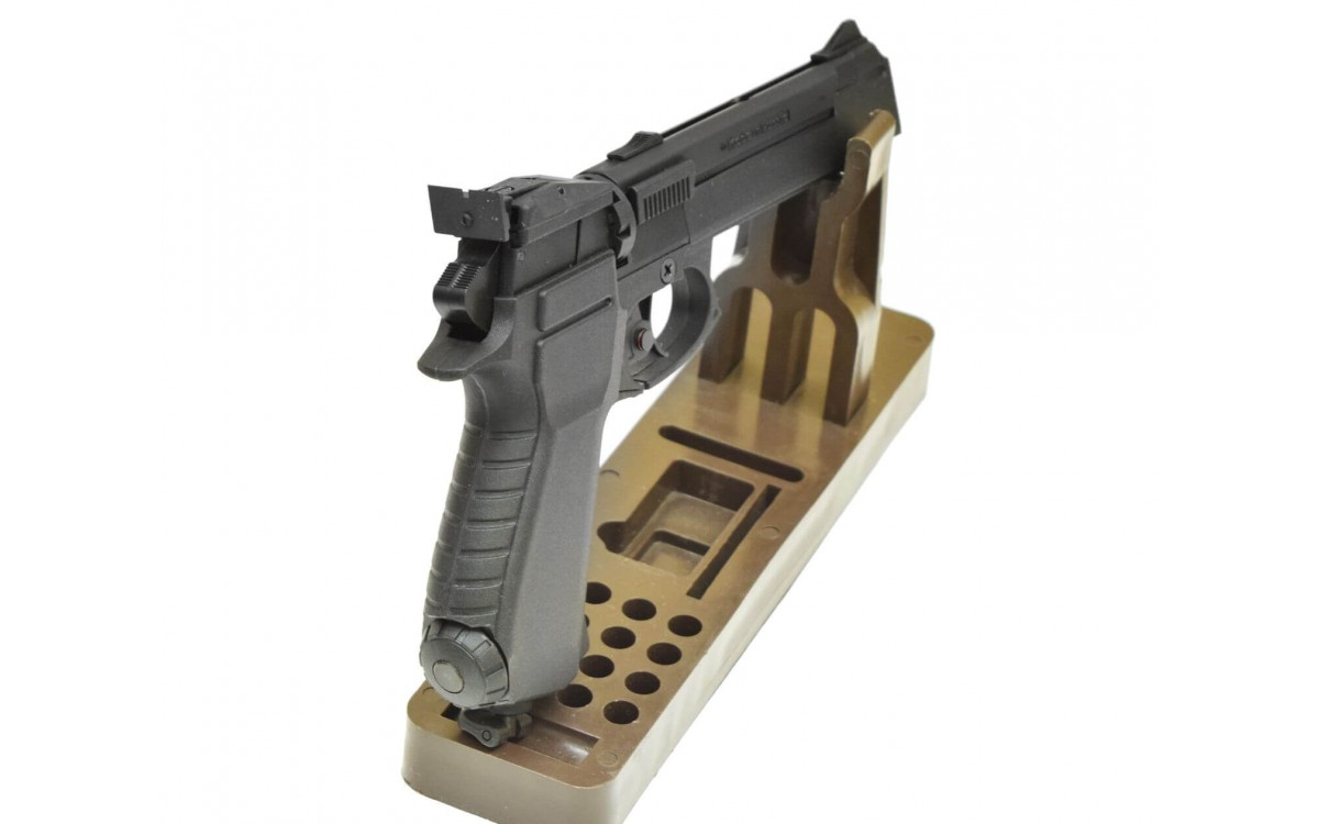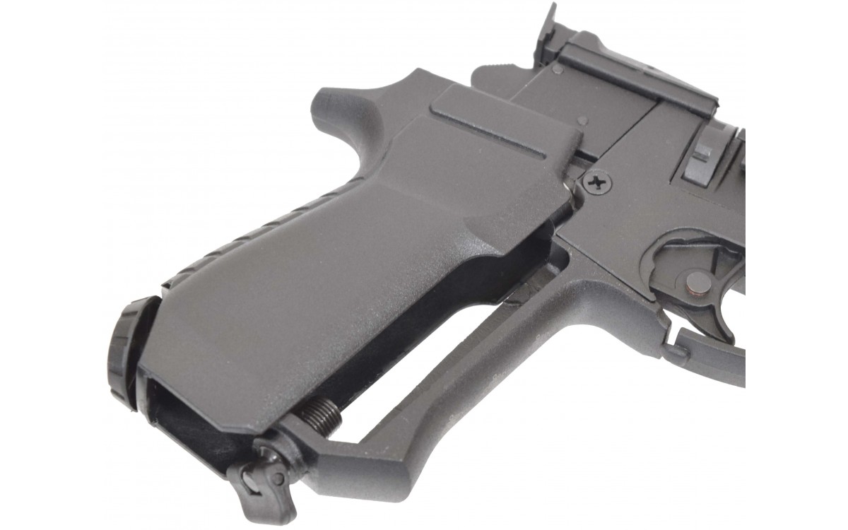 - Не менее примечательной является модульность пистолета. Менять облик оружия можно по желанию за счет сменного приклада и цевья, имитирующего ствол, а также насадки пистолет-пулемёт.