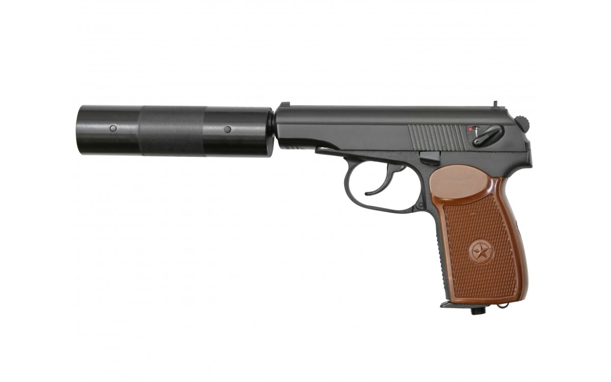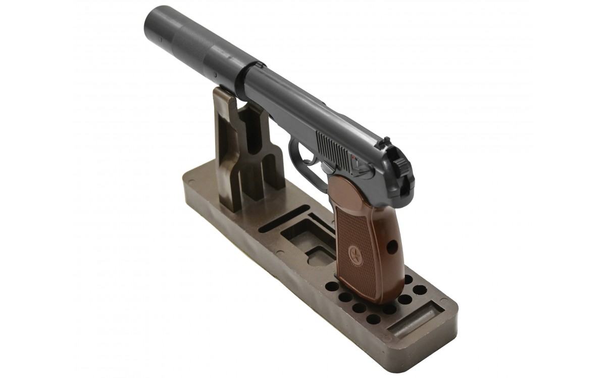 Пневматический пистолет МР 654К-22 фальшглушитель – еще одна копия легендарного пистолета Макарова от Ижевского механического завода. Как и другие реплики от ИМЗ, эта модель имеет максимальное сходство с боевым оригиналом, что по достоинству оценят коллекционеры копий огнестрельного оружия и просто любители развлекательной стрельбы.