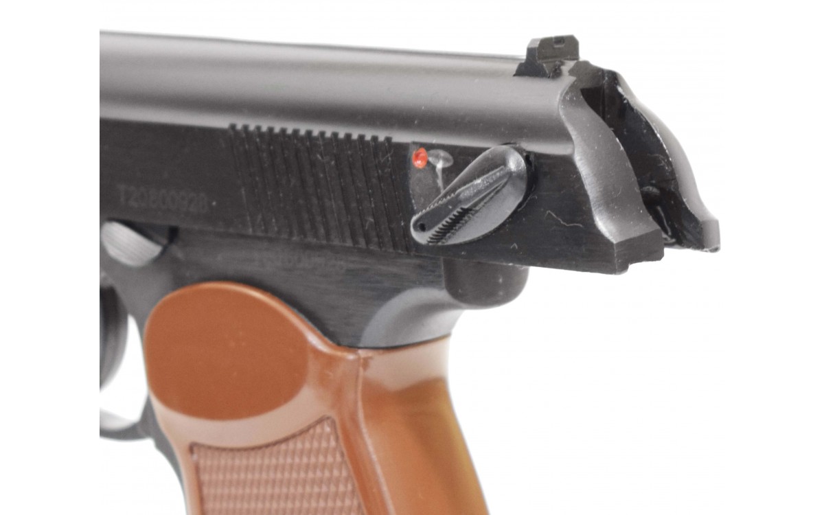 - Пистолет МР 654К-22 оснащен надежным флажковым предохранителем.