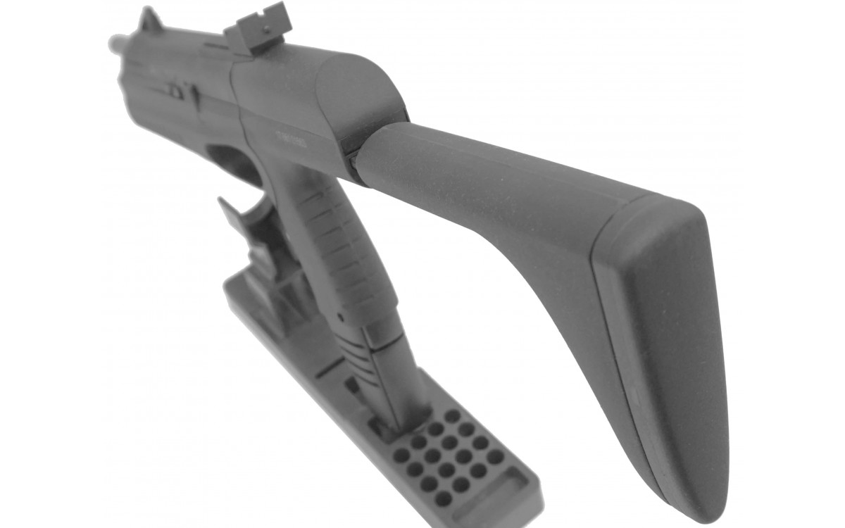 - Источником энергии для стрельбы служит баллончик СО2 на 12 г., который вставляется в магазин пистолета, вмещающий 30 шариков ВВ калибра 4,5 мм.