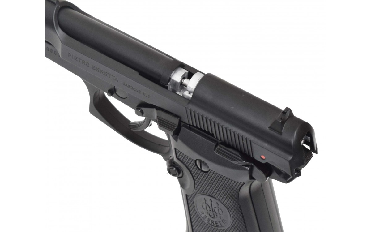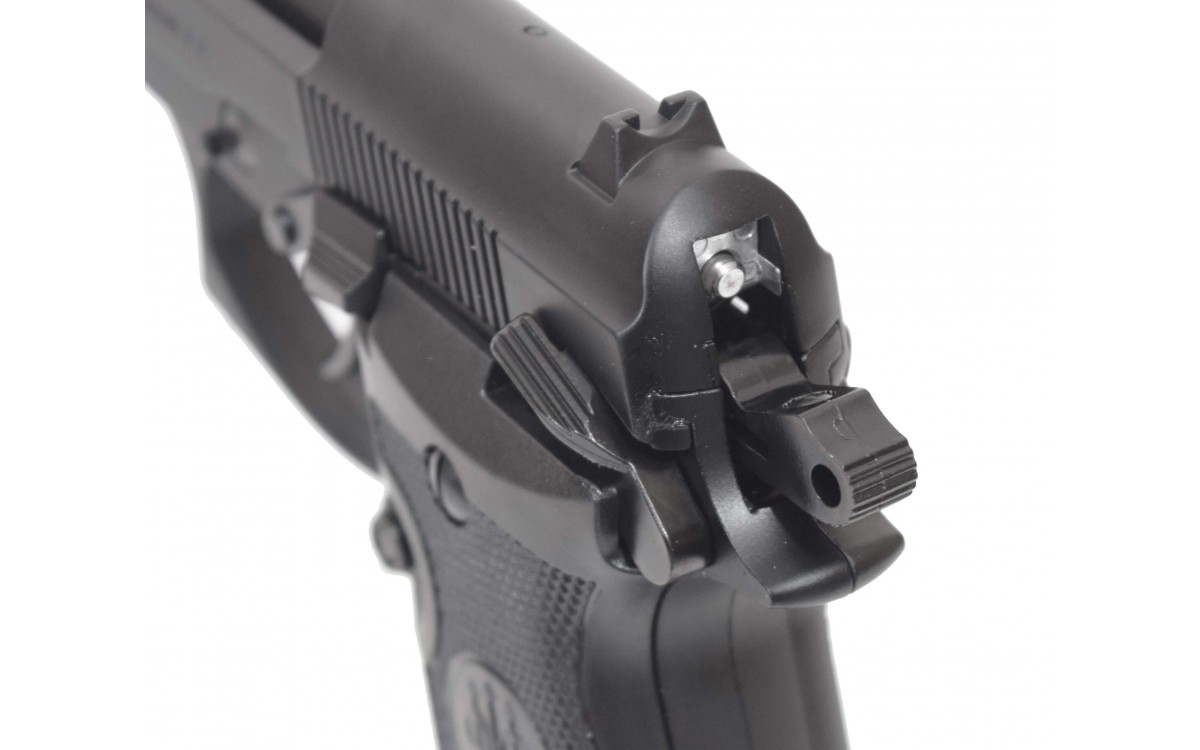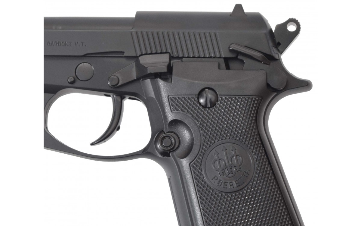 - Пистолет Umarex Beretta 84FS оснащен двусторонним предохранителем флажкового типа, удобным для использования при стрельбе как с левой, так и с правой руки.