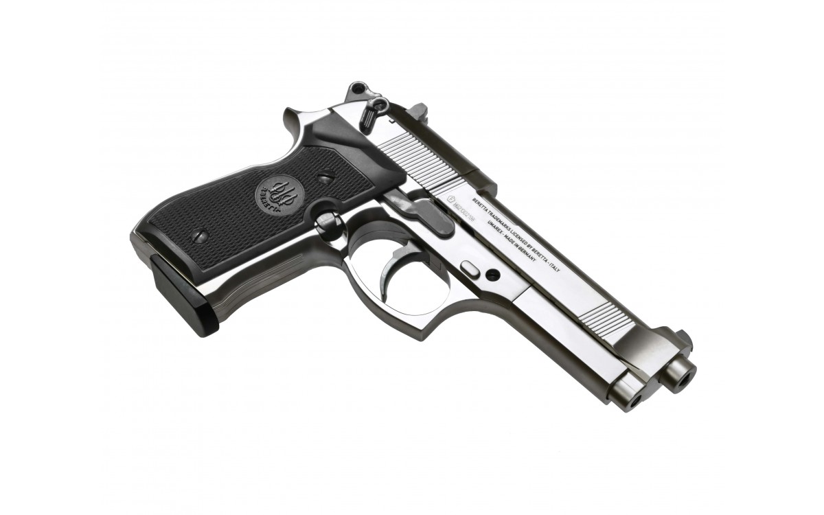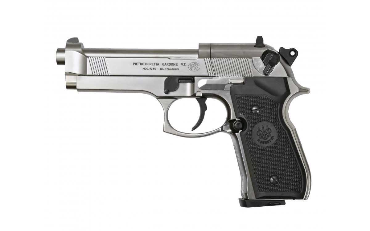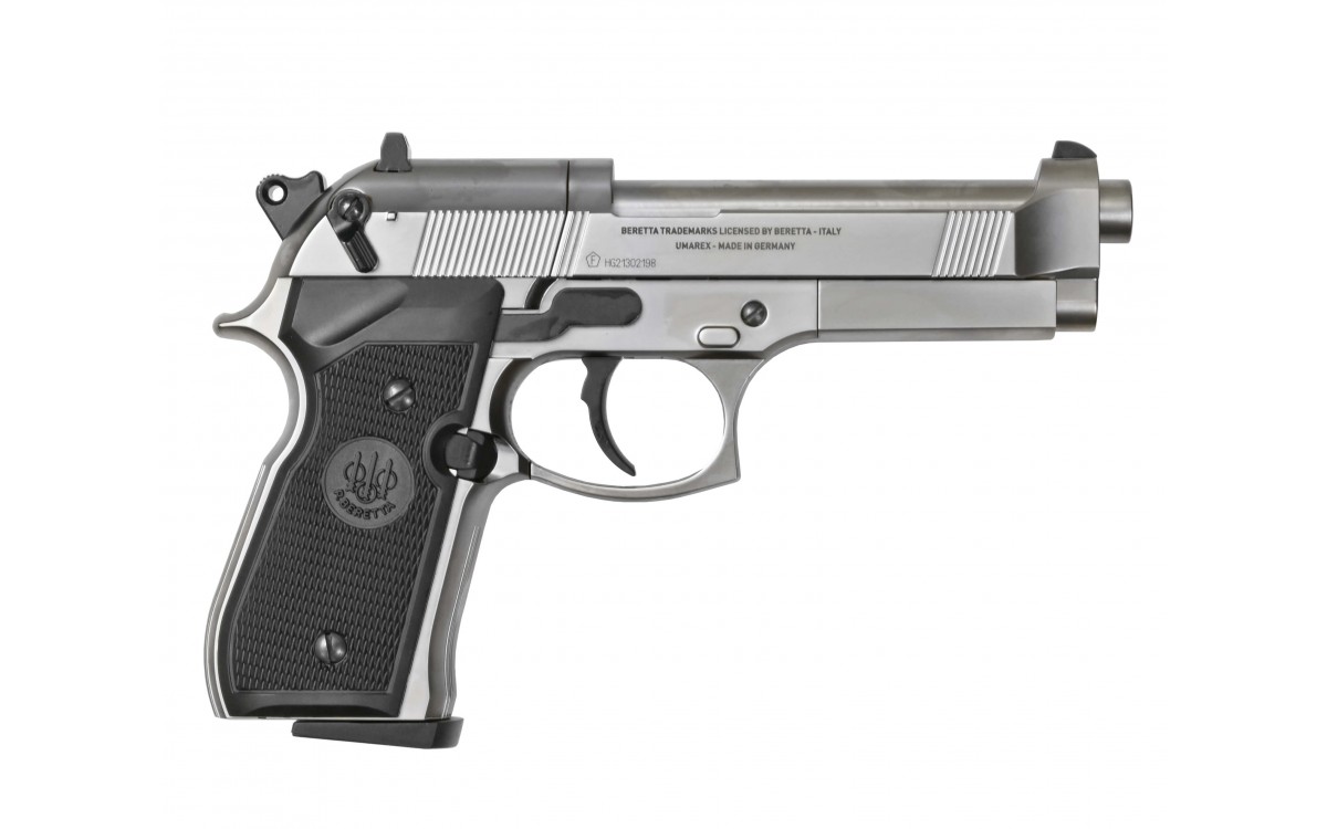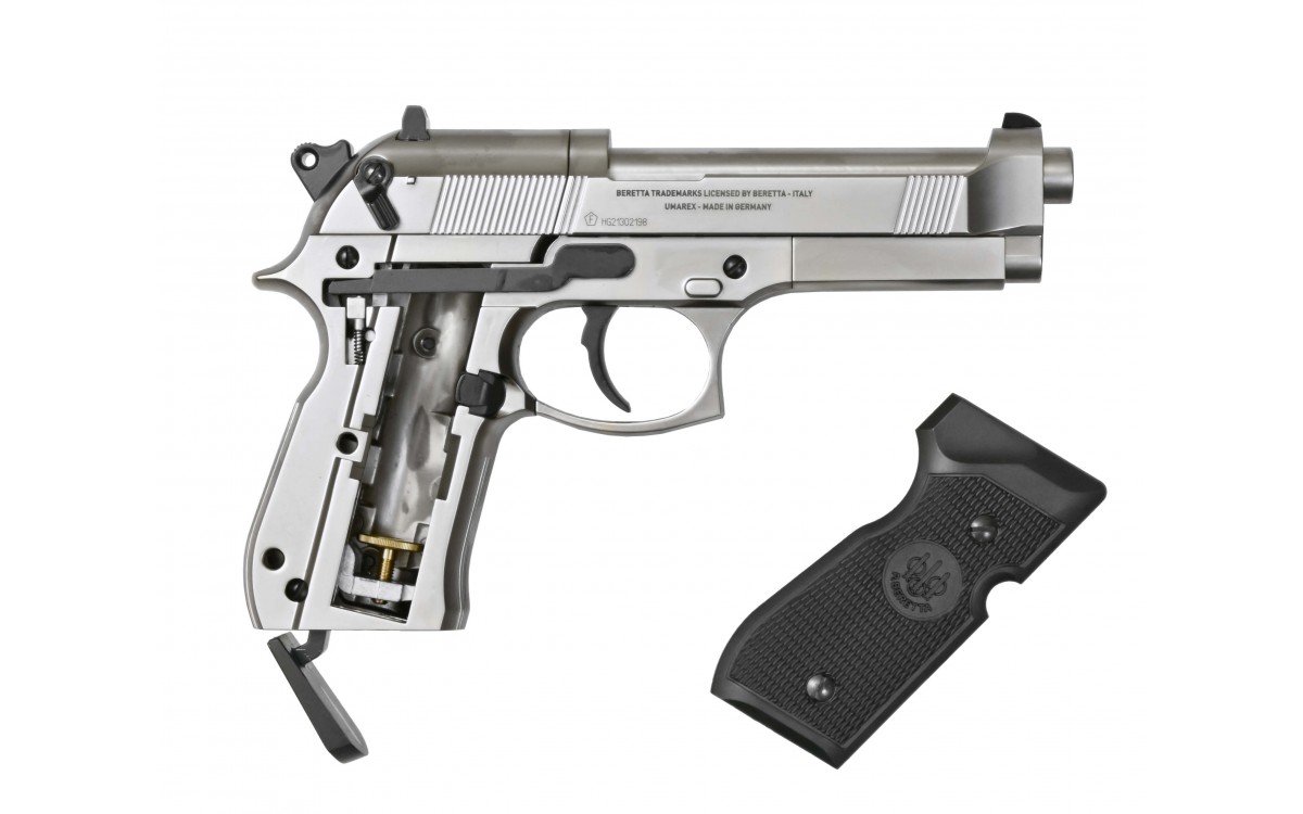 Пневматический пистолет Umarex Beretta 92 FS никель с чёрными накладками 4,5 мм