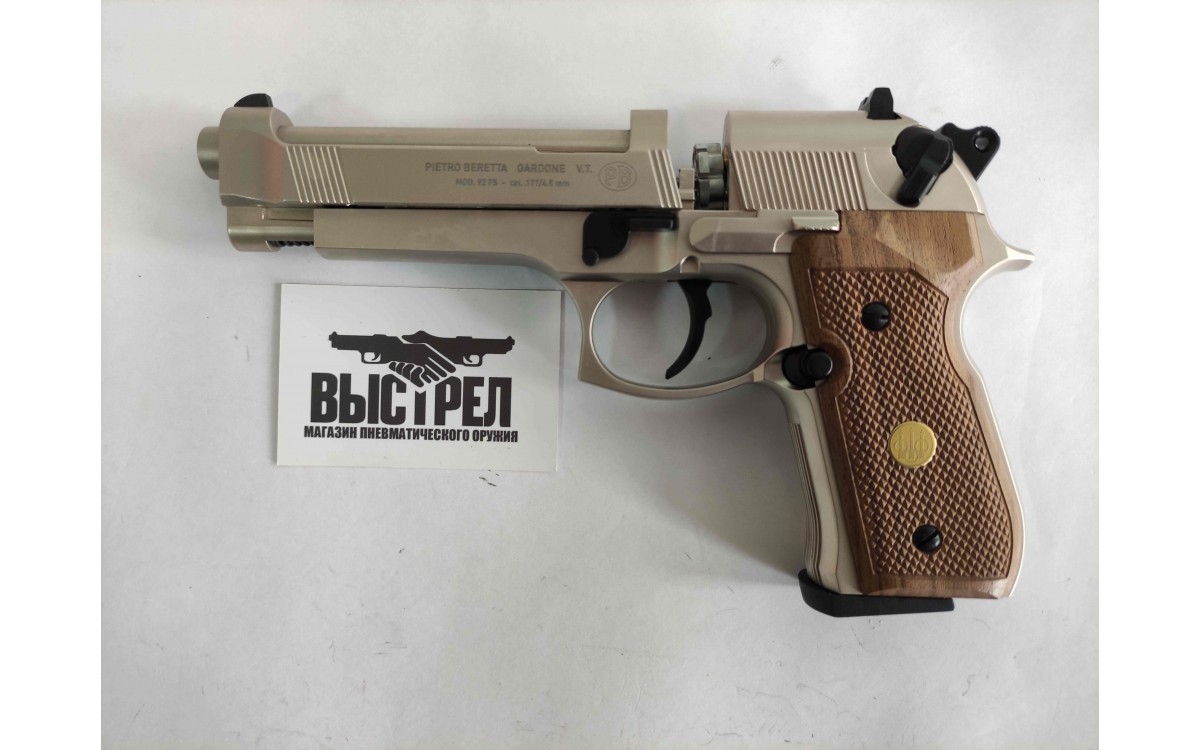 Описание пневматического пистолета Umarex Beretta 92 FS (никель, дерево)