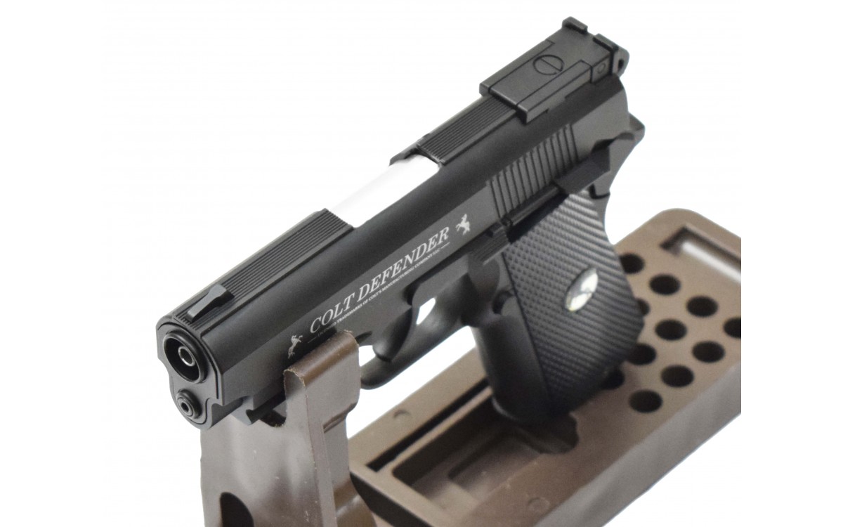 - Umarex Colt Defender обладает исключительной точностью для пистолетов, стреляющих самовзводом.
