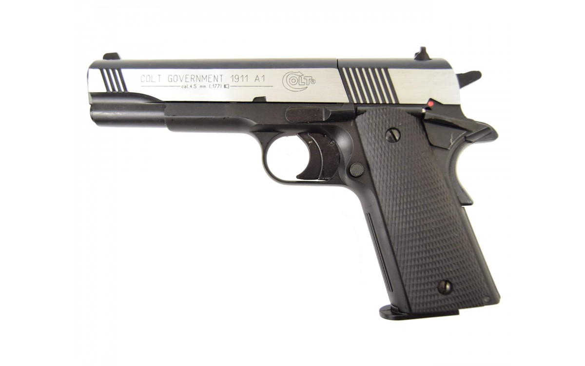 Пневматический пистолет Umarex Colt Government M1911 A1 Dark OPS хром. с черн. пласт. накладками 4,5 мм