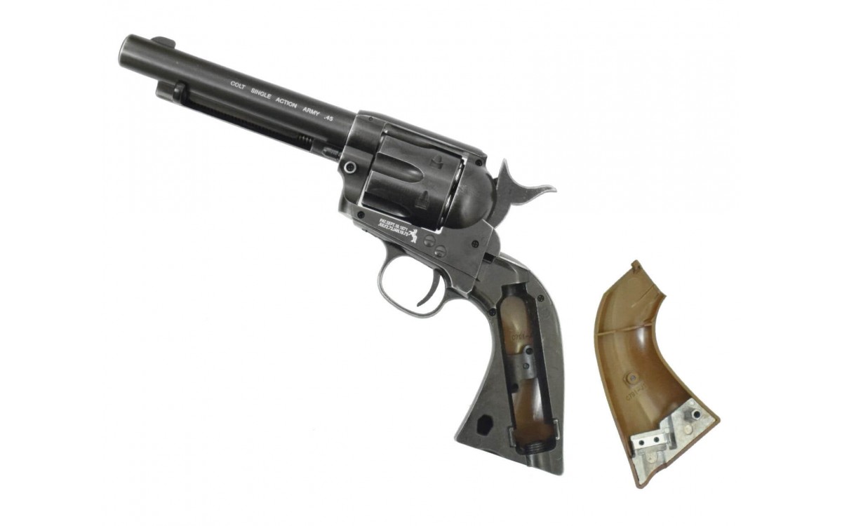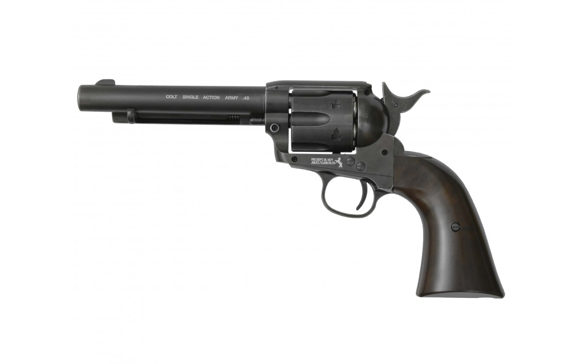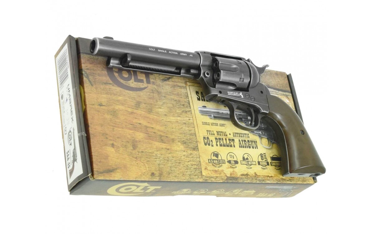Знаменитая компания Umarex выпустила реплику револьвера Кольт Миротворец в пневматической версии с гладким стволом Colt Single Action Army 45 BB. Пневматика Умарекс славится высоким качеством изготовления и долгим сроком службы, эта модель не является исключением.