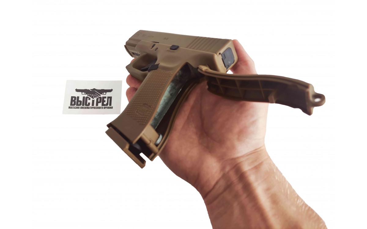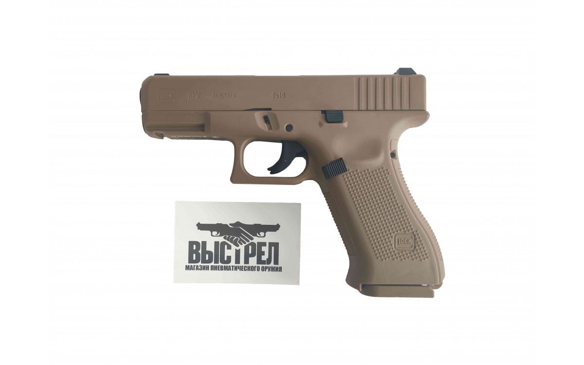 Пневматический пистолет Umarex Glock 19Х в цвете TAN – это газобаллонная пневматика копирующая австрийский пистолет Glock 19X, который используется в правоохранительных органах многих стран мира. Копия пистолета внешне достоверно повторяет боевой образец с высокой точностью.