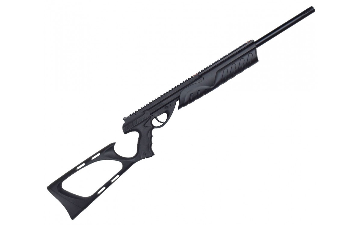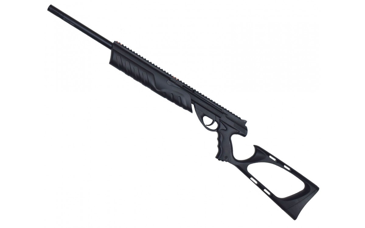 Пистолет с удлиненным стволом, прикладом и цевьем имеет такие характеристики: длина 98 см, масса 1170 г. Кроме того, по заявлению производителя скорость шарика, способна достигать показателя 187 м/с, но для сответствия законодательству РФ энергия оружия снижена.