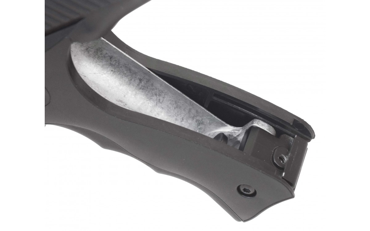 Умарекс Морф Пистол для своей бесперебойной работы использует два основных расходника, с заменой которых справится даже новичок, двенадцатиграммовые баллоны с диоксидом углерода и металлические шарики калибра 4.5 мм. Шары снаряжаются в бункерный отсек в количестве 30 штук с левой стороны затвора, баллончик же вставляется в нишу, спрятанную за пластиковой накладкой в задней части рукояти и затягивается встроенным барашком.