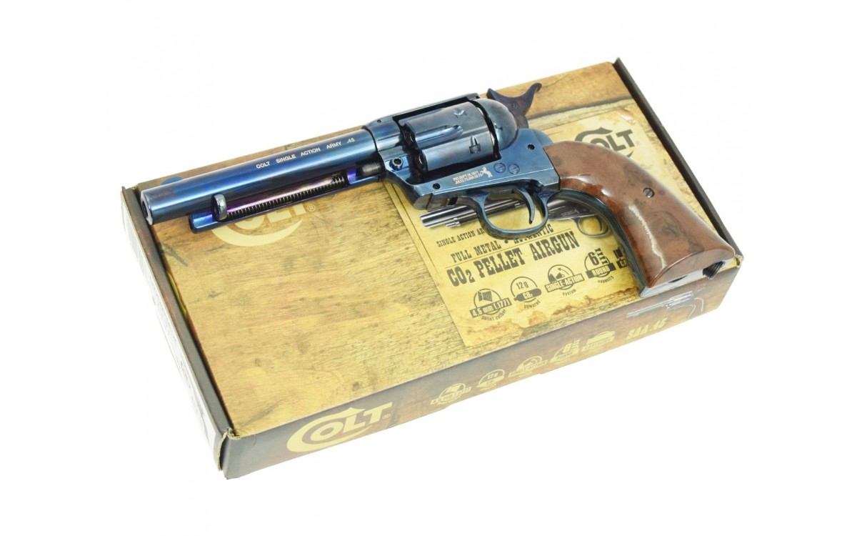 Пневматический револьвер Umarex Colt Single Action Army 45 blue finish - будет интересен всем представителям сильного пола. Револьвер очень стильный и позволит стрелку почувствовать себя настоящим ковбоем.