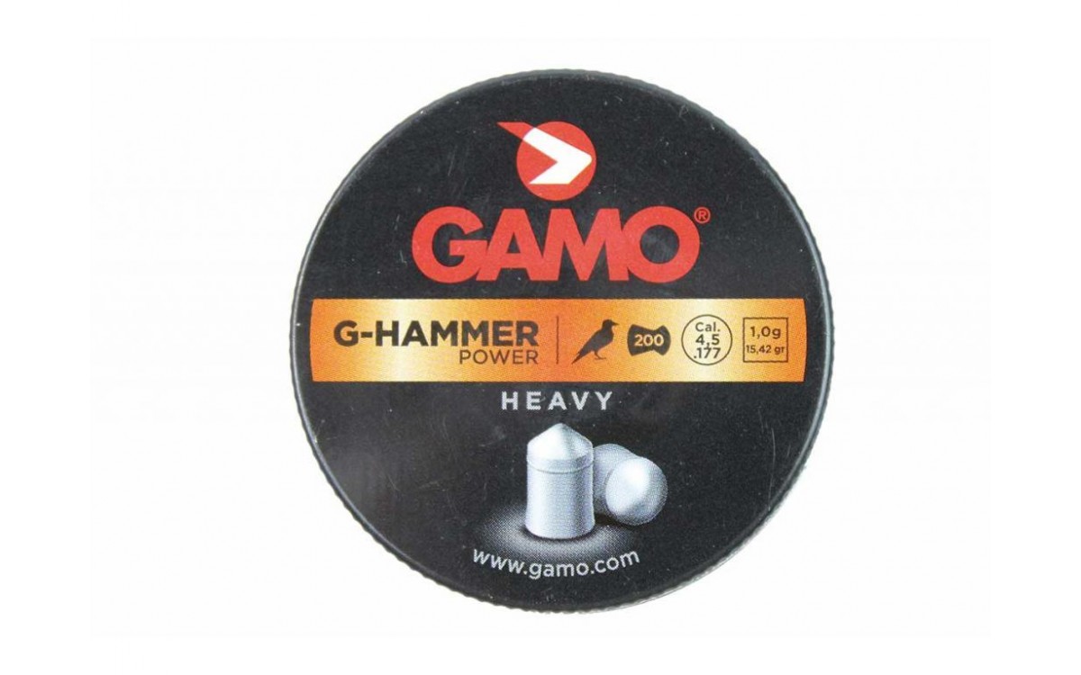 Пули пневматические "Gamo G-Hammer" кал. 4,5 мм. (200 шт.) - свинцовые тяжёлые пули улучшенной точности. Вес свинцовой пули Gamo G Hammer — 1 грамм. Пули обладают отличным баллистическим коэффициентом, улучшенным проникновением. Пули предназначены для мощных пневматических винтовок калибра 4.5 мм. Калибр 4,5 мм (.177). Диаметр 4,5 мм. Масса пули 1 грамм. Масса пули 15,4 гран. Производитель Gamo.