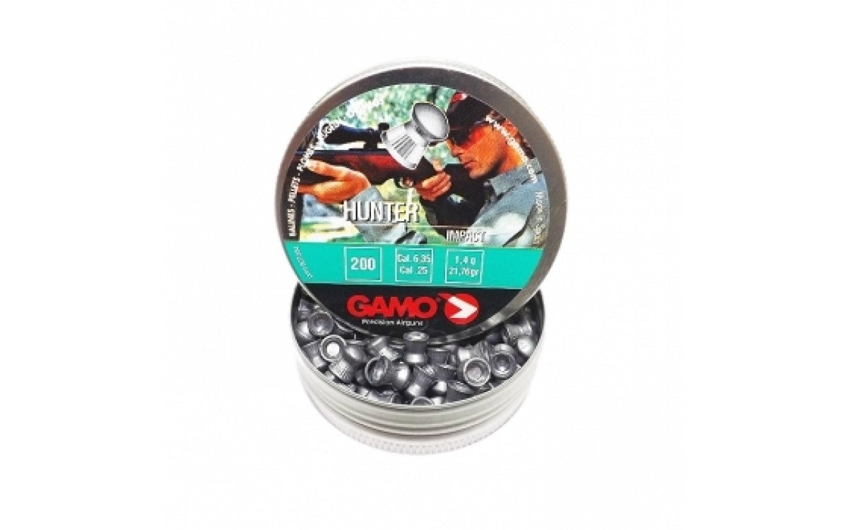 Пули пневматические GAMO Hunter 6,35 мм (200 шт.) - пули Gamo Hunter, обладающие высокой кинетической энергией и хорошей пробивной способностью. Классическая форма головной части пули, – полусфера, а также идеально рассчитанная с точки зрения аэродинамики юбка в сочетании дают стабильность полета, высокую точность стрельбы, а также неплохую пробивную способност.