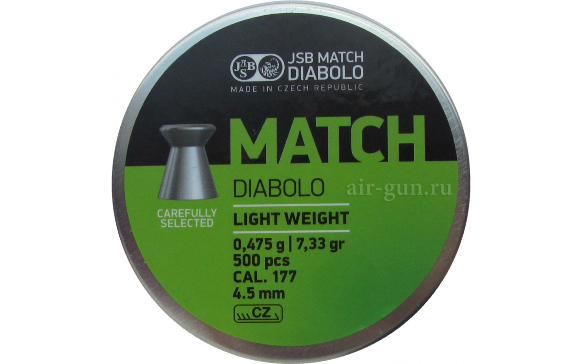 Заказать пули для пневматики JSB вы можете позвонив в наш магазин. Пули JSB Diabolo очень популярны. Пули пневматические Green Match Diabolo 4,5 мм 0,47 грамма (500шт.) изготовлены фирмой JSB. Пуля обладает достаточно легким весом 0,475 грамм (7,33 гран). Пуля выполнена в форме конического стаканчика с выпуклым дном, с рисками на юбке и закругленной головкой.