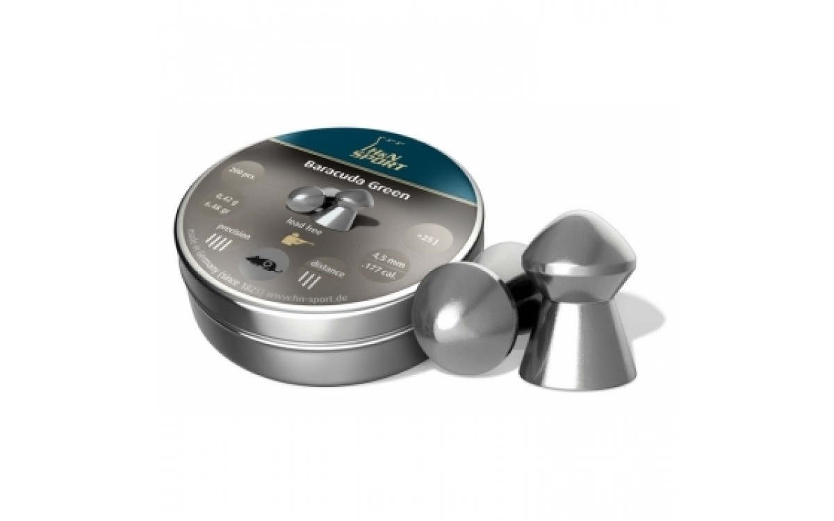 Пули H&N Baracuda Green 4,5 мм (200 шт) - оловянные пули классической формы Баракуда, что обеспечивает отличную аэродинамику. Предназначены для пневматического оружия калибра 4,5 мм с дульной в пределах 7,5 Дж. Применение олова в качестве материала позволило при сохранении формы пули сделать массу предельно малой, что дает высокую скорость в пневматических винтовках даже небольшой мощности. Кроме того пули H&N Baracuda Green не дают освинцовку, олово гораздо меньше свинца загрязняет канал ствола, а также менее вредно как для окружающей среды, так и для организма человека. Калибр 4,5 мм. Масса 0,42 гр.