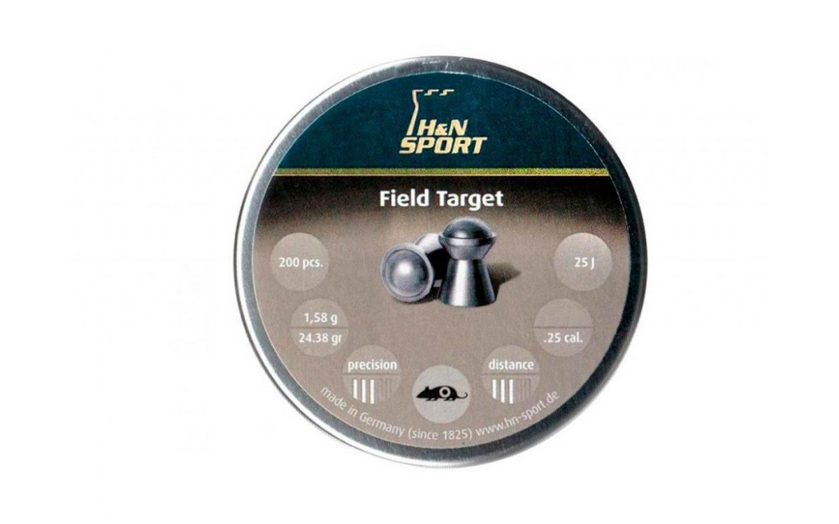 Field Target - свинцовые пули, производства компании H&N, используются для стрельбы из пневматического оружия калибра 5,5 мм. Масса пули - 1,58 гр. В банке 200 пуль.